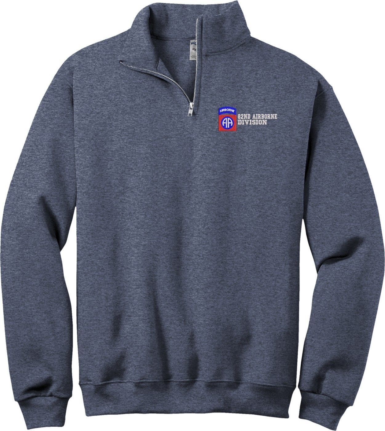 This 82nd Airborne Division Split (CIB on back) Heather Navy Quarter-Zip Pullover X-Large is an overstock item and is only available for the value price while supplies last. Clearance Items are not eligible for Refunds or Returns,A percentage of the sale of each MilitaryBest item is forwarded to the licensing departments of each respective branch of service in support of the MWR (Morale, Welfare, & Recreation) program. These payments are made by either ALL4U LLC or the wholesaler from where the item originated. Our team thanks you for your service and your support of these programs.