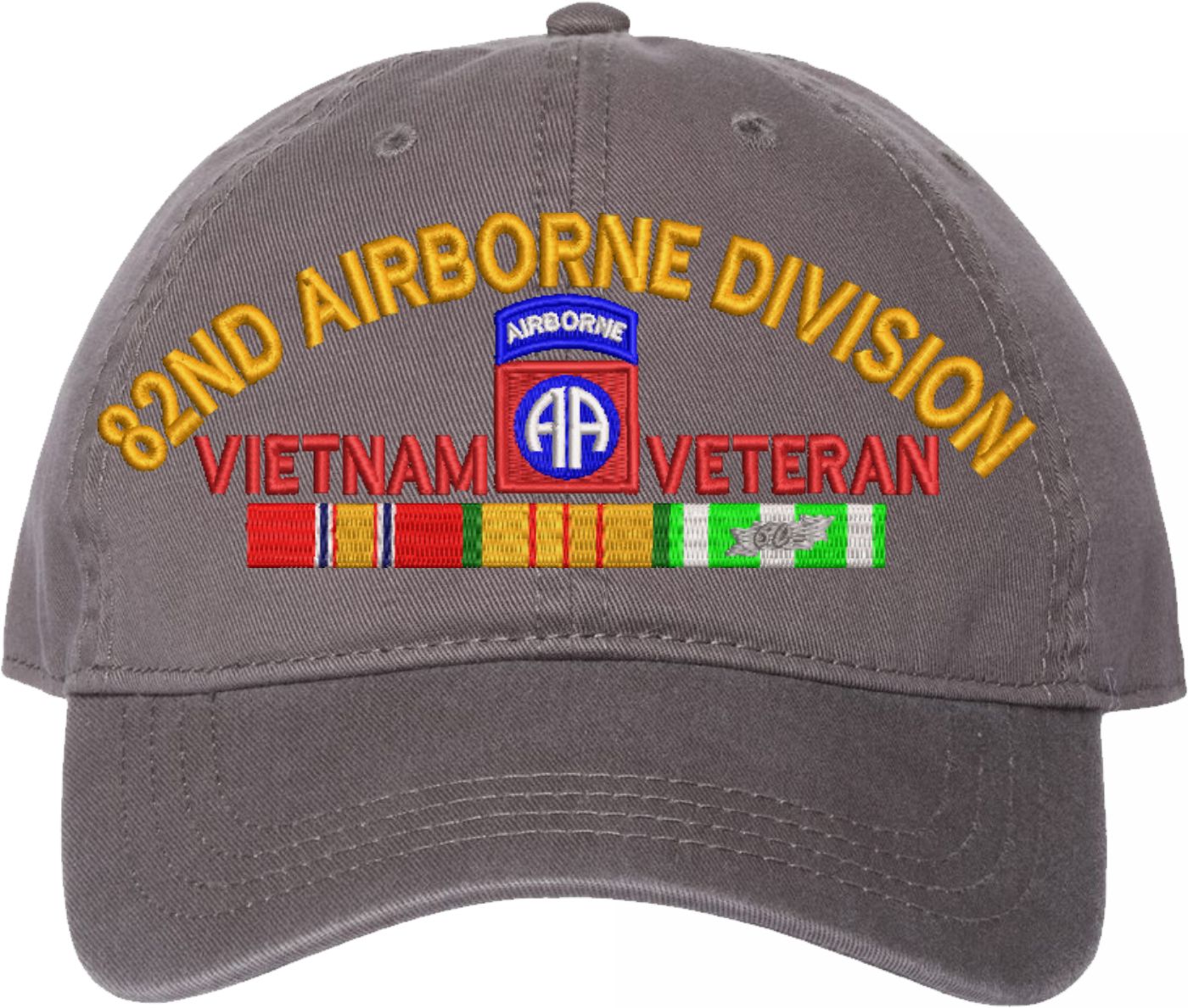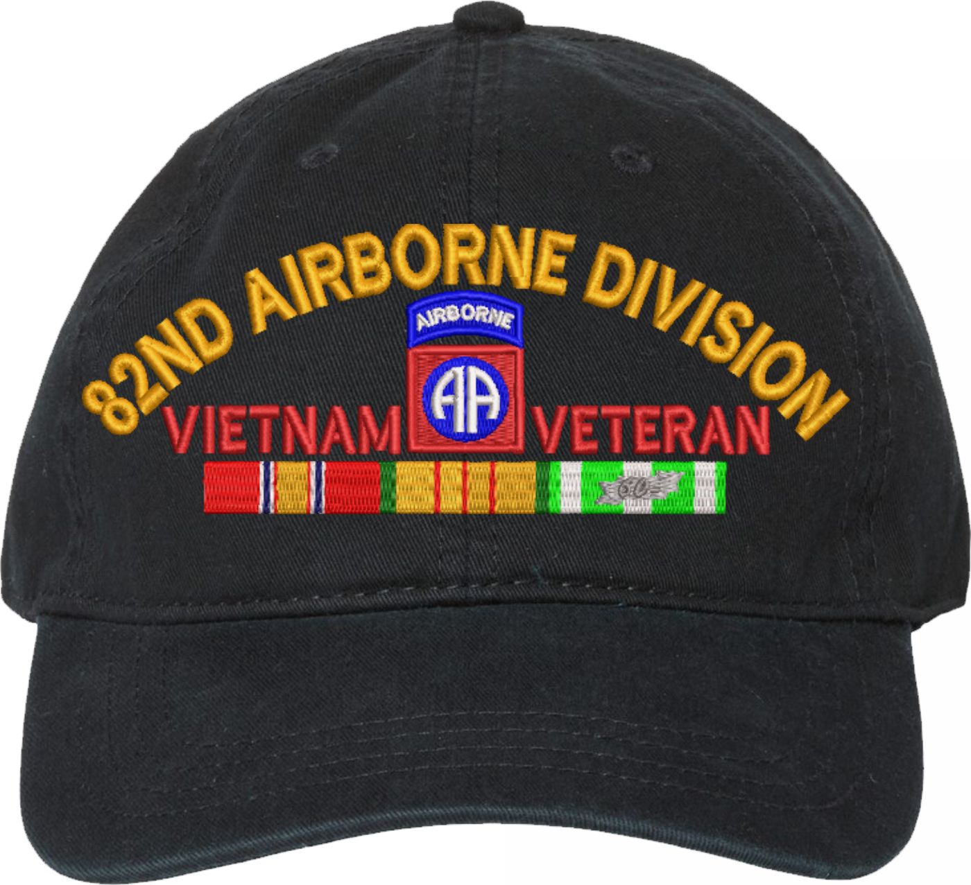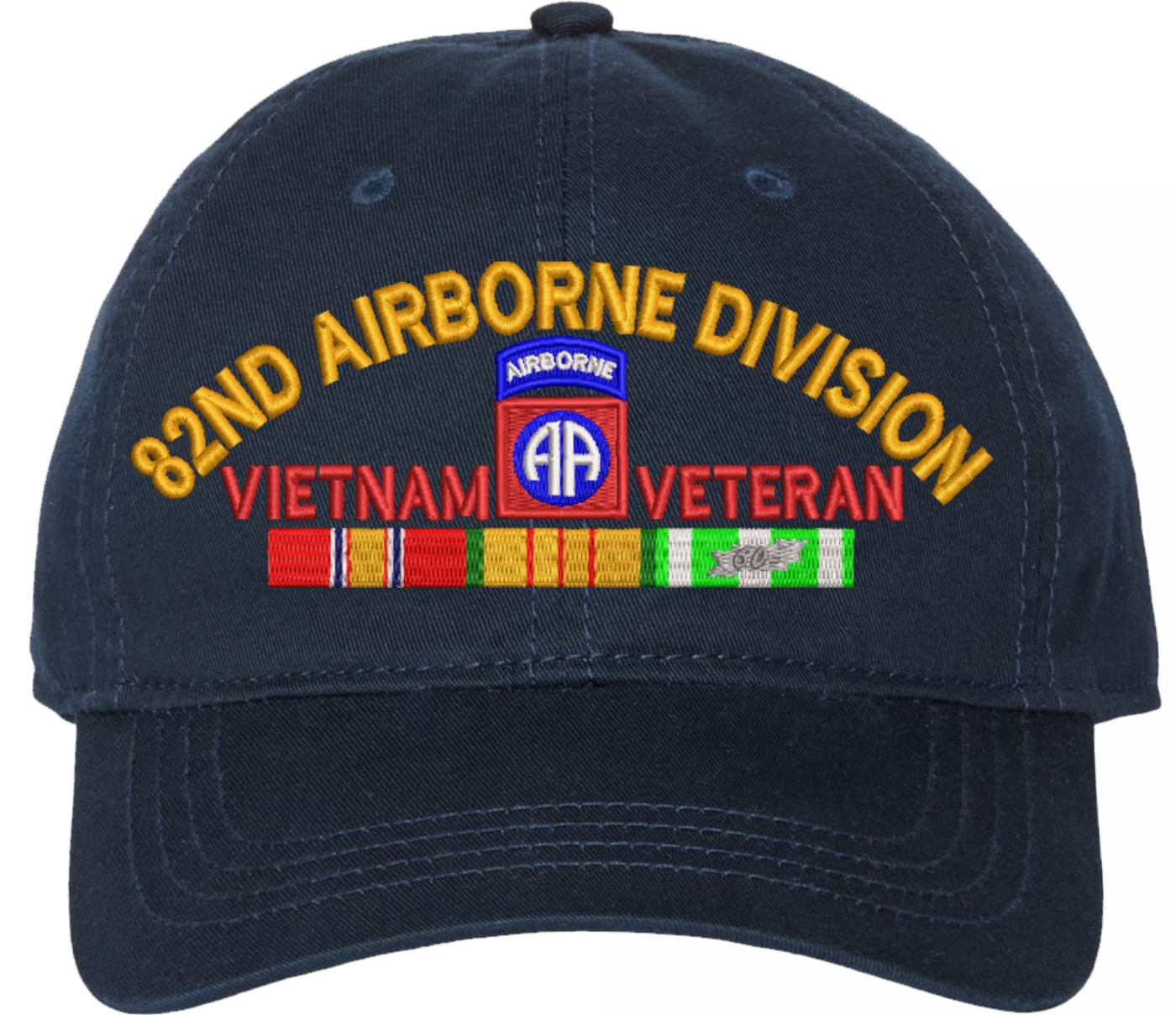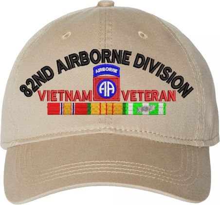 Show your Army pride with this 82nd Airborne Division Vietnam Veteran with Ribbons Unstructured Dad Cap from MilitaryBest. Crafted from 100% washed chino twill cotton, this six-panel, low-profile cap offers a relaxed and comfortable fit. Featuring high-quality embroidery done in our Scottsboro, Alabama facility, this cap is designed with a pre-curved visor and an adjustable tri-glide buckle closure for a perfect fit. Whether for everyday wear or as a meaningful gift, this cap is a great way to honor your own or a loved one's service.For caps ordered with custom embroidered personalized text please allow an additional 3 to 5 days production time. All custom back text will be embroidered in ALL CAPITAL LETTERS. Caps with back text or eggs are non-returnable unless there is a material defect in the cap.