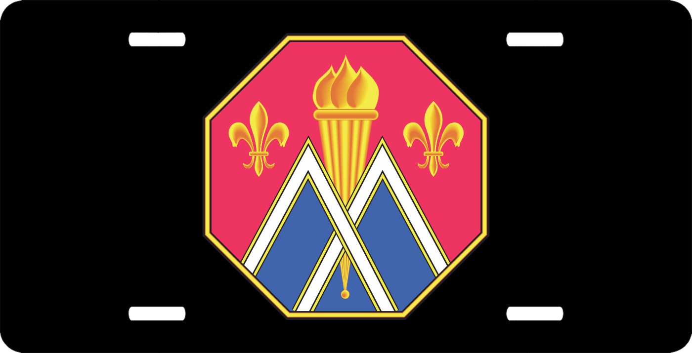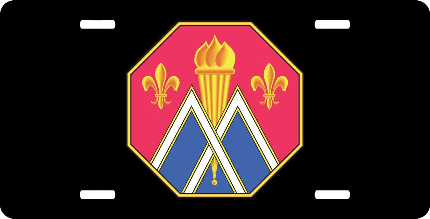 This 89th Regional Support Command Unit Crest License Plate is made from heavy gauge aluminum and has a baked enamel finish to last for many years of use. Each plate measures 5 15/16" x 11 15/16". This license plate would make a wonderful addition to your collection or a great gift.