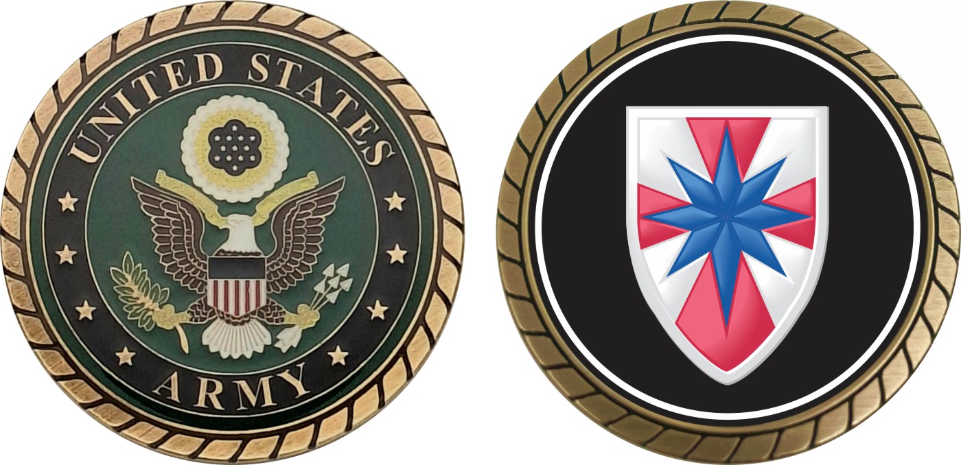 This 1 3/4” 8th Field Army Support Command Patch Challenge Coin is proudly offered by Militarybest. This Officially Licensed Army coin has beautiful enamel finish on one side and an organized crisp clean design on the opposite side.