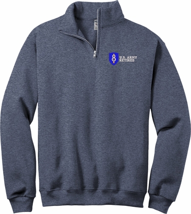 MilitaryBest is proud to offer this 8th Infantry Division Retired Embroidered Quarter-Zip Pullover. This quality shirt is embroidered by our MilitaryBest team in Northeast Alabama.PRODUCT FEATURES