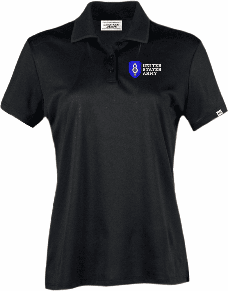 MilitaryBest proudly offers a top-quality 8th Infantry Division United States Army Authentically American Women's Moisture Polo made in the USA by Authentically American whom we have proudly partnered with.- Proudly Made and Embroidered in the USA.