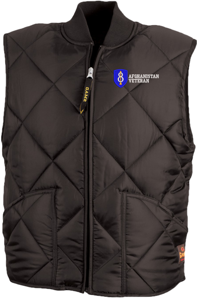 MilitaryBest is proud to offer this quality 8th Infantry Division Afghanistan Veteran Game Sportswear Finest Vest. Our U.S. Army Vests feature, wind-resistant nylon taffeta shell, 5oz poly-fill lining with thermal knit backing, full front zipper, 2 outer pockets, and are machine washable. These Military Sportswear Vests are proudly embroidered at our facilities in Scottsboro, AL.