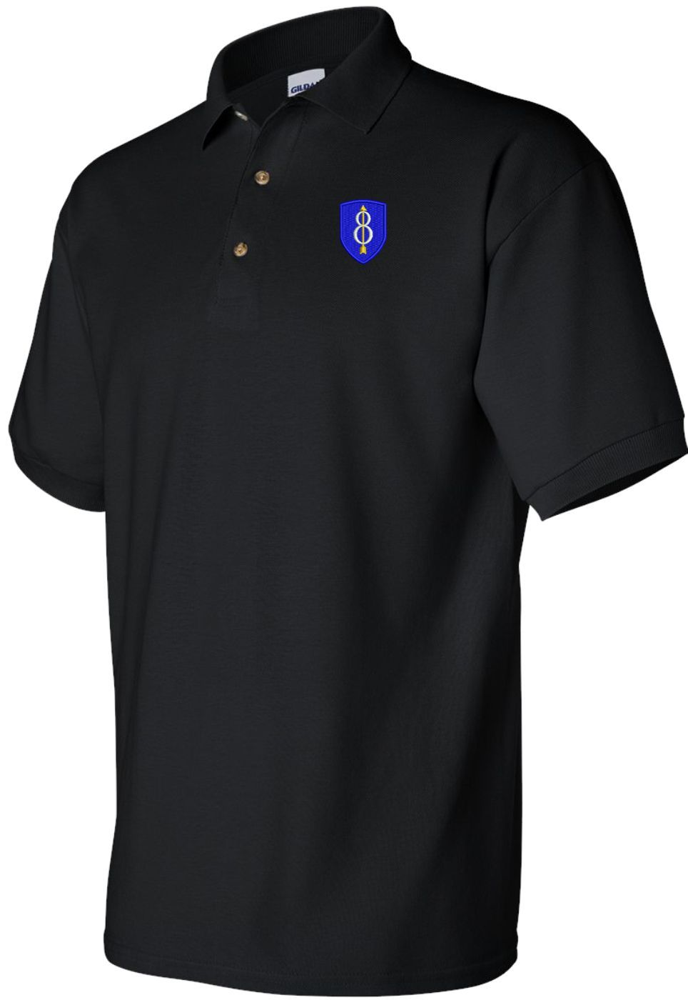 This 8th Infantry Division Black 100% Cotton Polo Medium is an overstock item and is only available for the value price while supplies last. Clearance Items are not eligible for Refunds or Returns,A percentage of the sale of each MilitaryBest item is forwarded to the licensing departments of each respective branch of service in support of the MWR (Morale, Welfare, & Recreation) program. These payments are made by either ALL4U LLC or the wholesaler from where the item originated. Our team thanks you for your service and your support of these programs.
