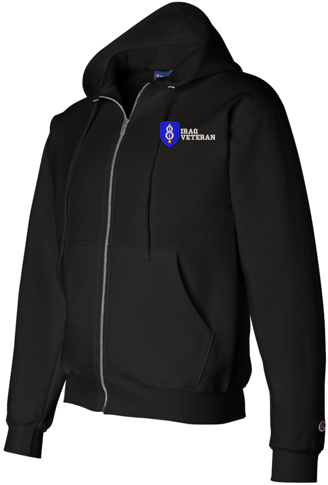 MilitaryBest is proud to offer this quality 8th Infantry Division Iraq Veteran Zippered Hoodie. Each U.S. Army Zippered Hoodie is direct embroidered onto either a Champion or Gildan brand Zippered Hoodie using a 9.5 oz 50/50 Cotton Poly blend material. These Military Zippered Hoodies are proudly embroidered at our facilities in Scottsboro, AL.