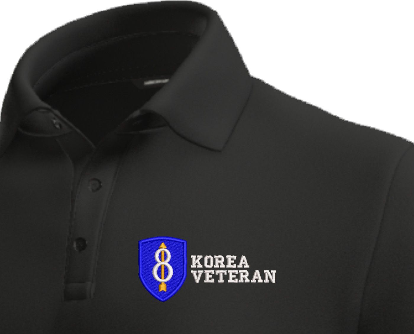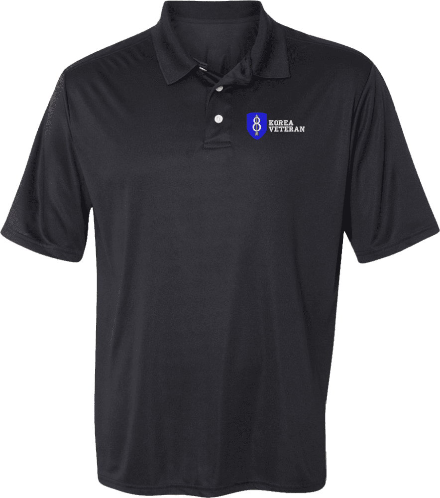 MilitaryBest is proud to offer this quality 8th Infantry Division Korea Veteran Polo. This Polo is made using 50/50 cotton/polyester moisture wicking material.These quality Military Polos are proudly embroidered at our facilities in Scottsboro, AL. Support the Army MWR program by purchasing only from Licensed Vendors.