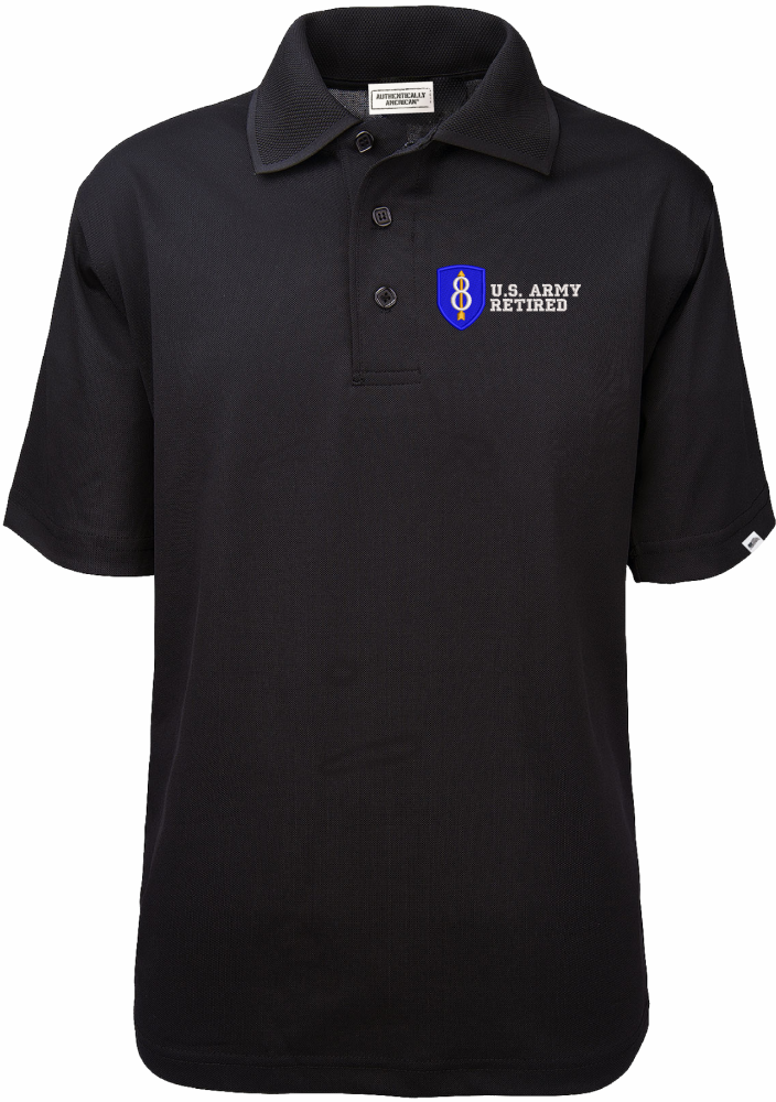 MilitaryBest proudly offers a top-quality 8th Infantry Division Retired Authentically American Mens Moisture Wicking Polo made in the USA by Authentically American whom we have proudly partnered with.- Proudly Made and Embroidered in the USA.