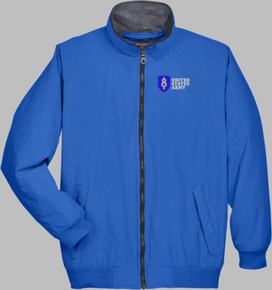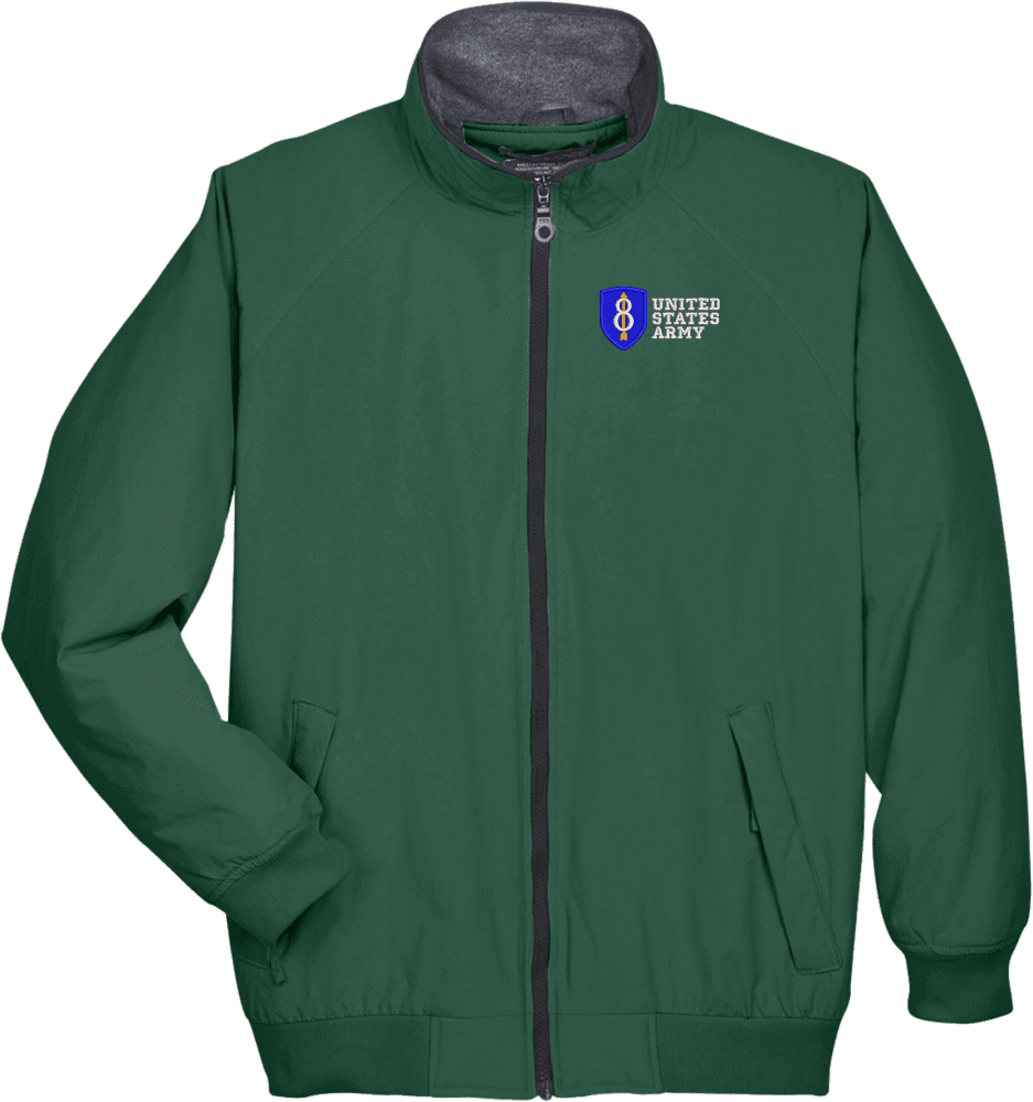 MilitaryBest is proud to offer this quality U. S. Army 8th Infantry Division 3 Season Jacket. Each 8th Infantry Division 3 season jacket is made from a 3-Layer system consisting of a nylon shell, an insulator layer, Nylon-lined sleeves, and an inside layer of fleece for comfort. Each jacket’s features include a sturdy black enamel front-zipper, raglan sleeves, outsize zip pockets, an inside zip security pocket, YKK zippers, and a banded-bottom. As with all MilitaryBest products, your satisfaction is guaranteed! This jacket can be worn in fall, winter, and spring and is proudly custom embroidered at our facilities in Scottsboro, AL.