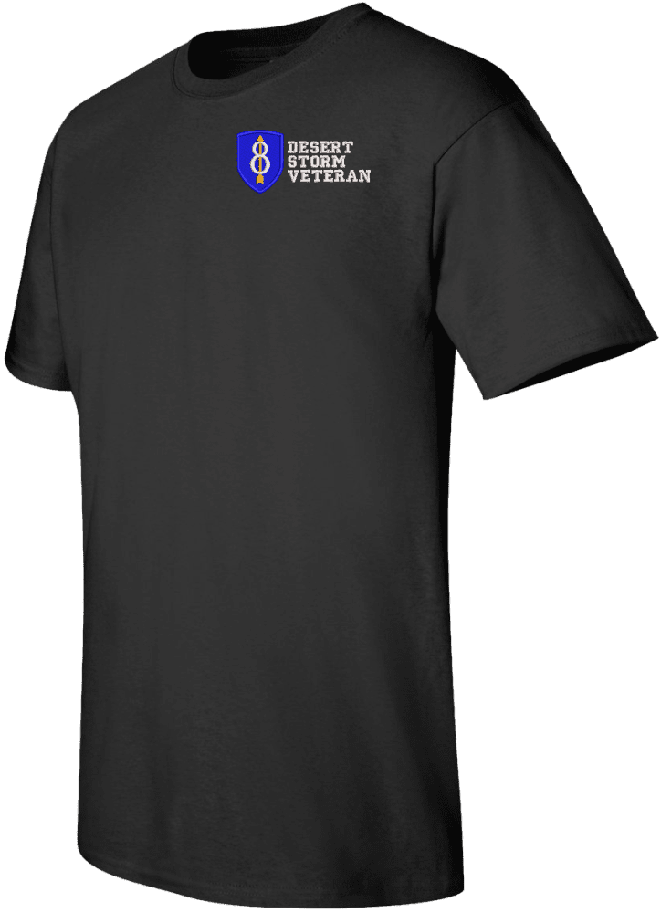 Note: Some of the Color Options pictured may not be available. Available Color Options are listed on the drop down menu above.MilitaryBest is proud to offer this quality 8th Infantry Division Desert Storm Veteran T Shirt. This Gildan brand short sleeve t-shirt is made using a 6 oz pre-shrunk 100% cotton material. These quality Military T Shirts are proudly embroidered at our facilities in Scottsboro, AL. Support the Army MWR program by purchasing only from Licensed Vendors.