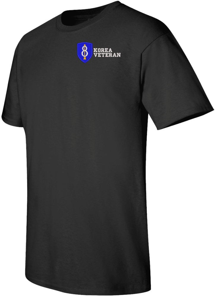 Note: Some of the Color Options pictured may not be available. Available Color Options are listed on the drop down menu above.MilitaryBest is proud to offer this quality 8th Infantry Division Korea Veteran T Shirt. This Gildan brand short sleeve t-shirt is made using a 6 oz pre-shrunk 100% cotton material. These quality Military T Shirts are proudly embroidered at our facilities in Scottsboro, AL. Support the Army MWR program by purchasing only from Licensed Vendors.