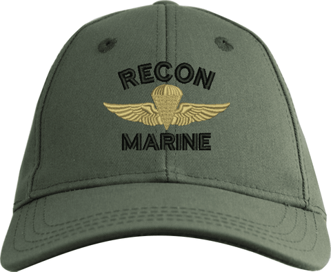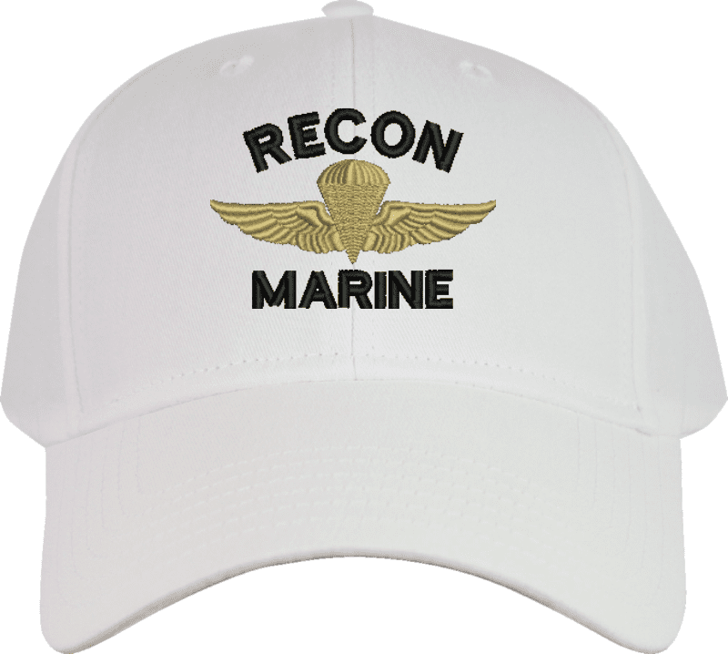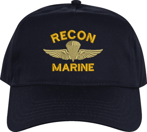 MilitaryBest is proud to offer this USMC Recon Marine with Parachute Wing Custom Embroidered Cap. The design of this Cap is crisp, clean, and sure to be loved by people of all ages! This Cap is crafted by our skilled embroidery technicians at our facilities in Scottsboro, AL. As with all MilitaryBest items, your satisfaction is guaranteed!Caps ordered with custom embroidered personalized back text require an additional 2 to 3 days production time. All custom back text will be embroidered in ALL CAPITAL LETTERS. Caps personalized with back text are non-returnable unless there is a material defect in the cap.