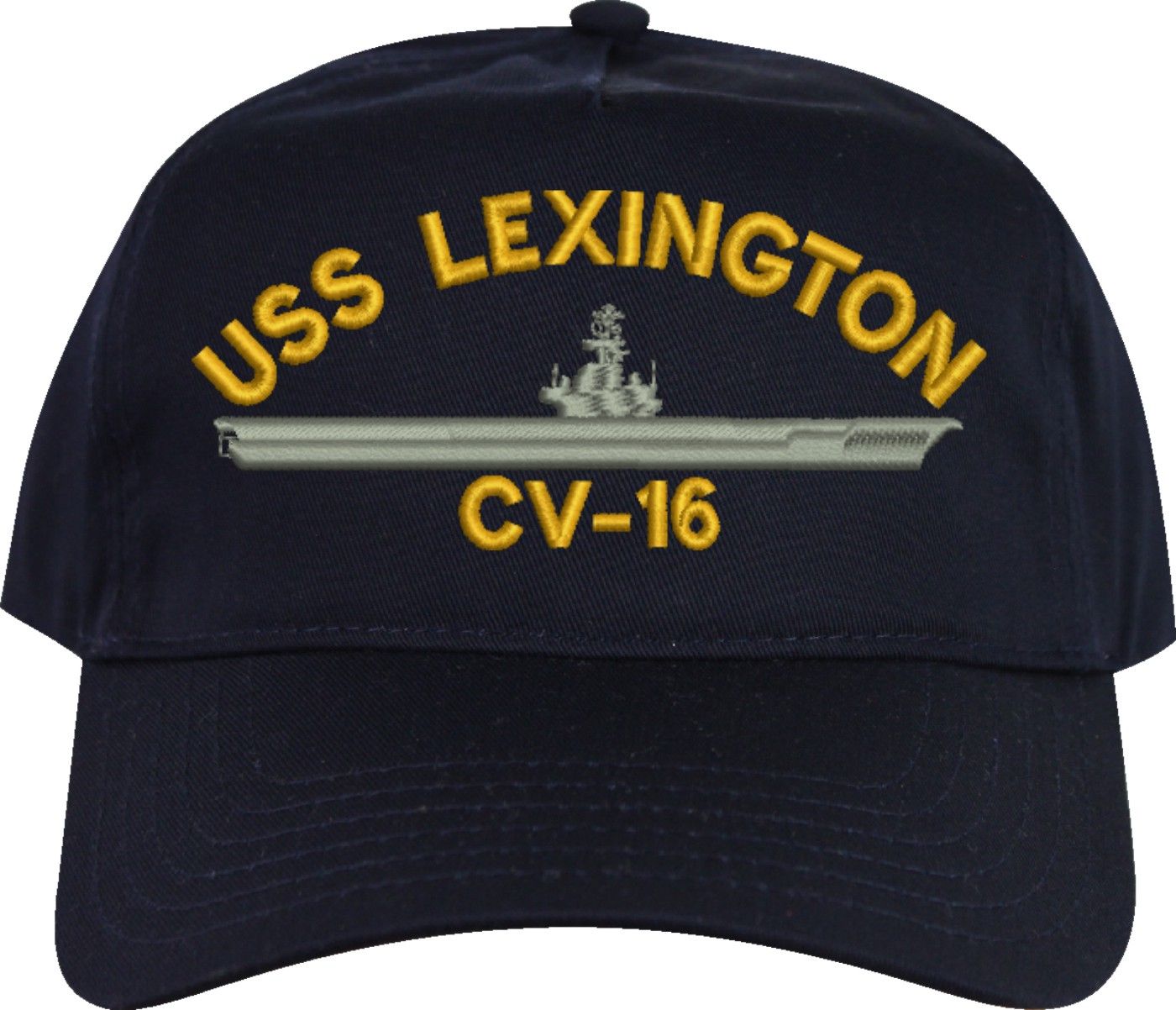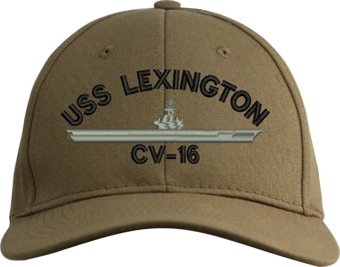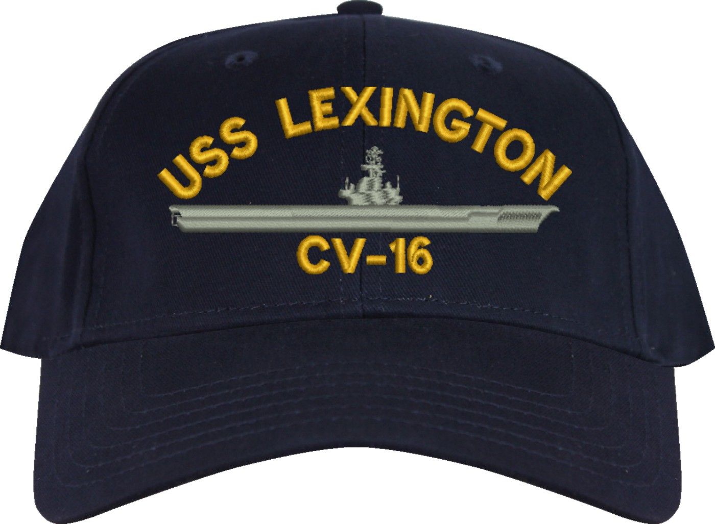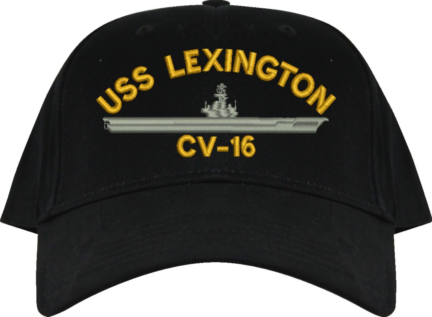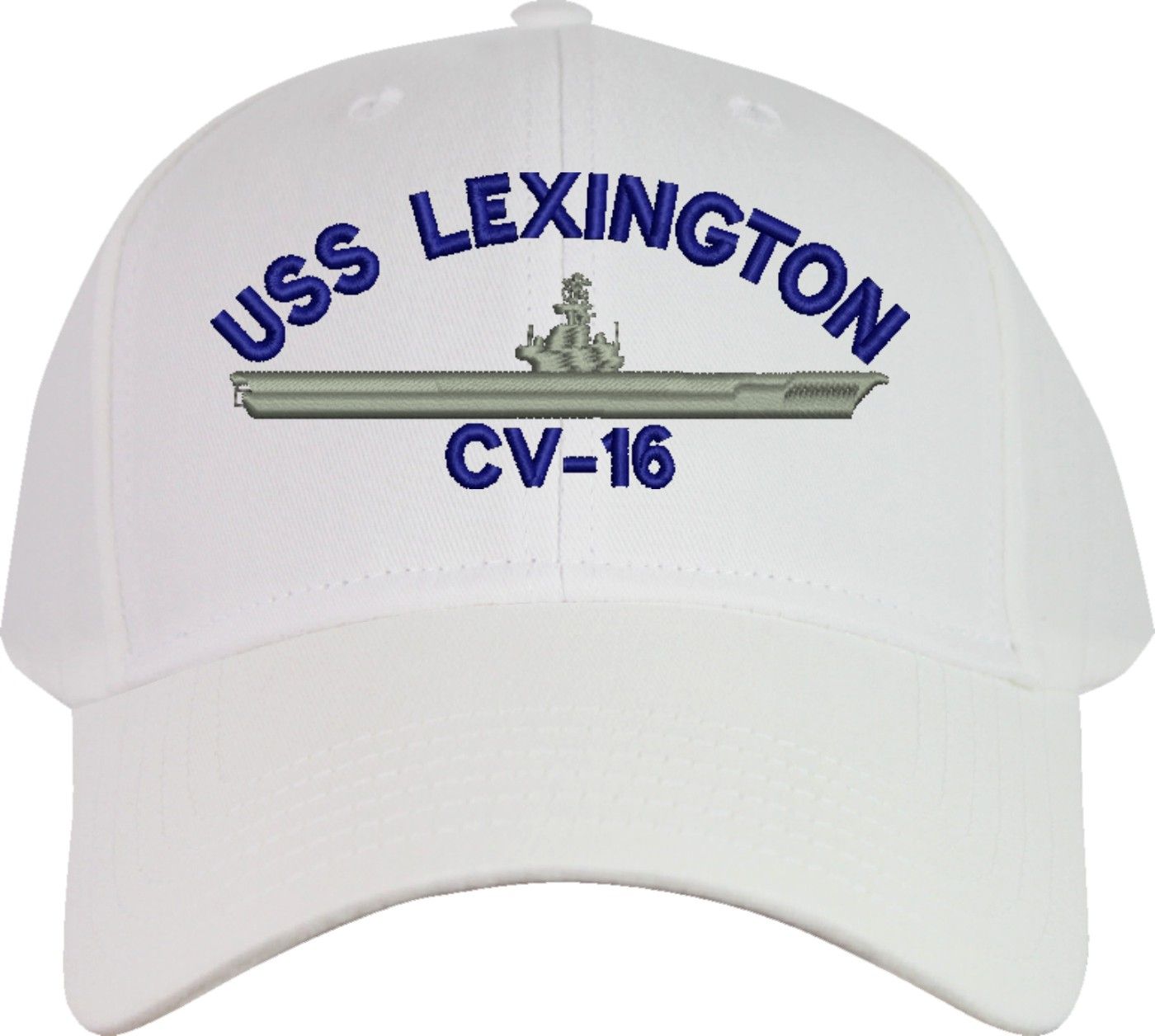 MilitaryBest is proud to offer this USS Lexington CV-16 Embroidered Cap. The design of this Cap is crisp, clean, and sure to be loved by people of all ages! This Cap is crafted by our skilled embroidery technicians at our facilities in Scottsboro, AL. As with all MilitaryBest items, your satisfaction is guaranteed!Caps ordered with custom embroidered personalized back text require an additional 2 to 3 days production time. All custom back text will be embroidered in ALL CAPITAL LETTERS. Caps personalized with back text are non-returnable unless there is a material defect in the cap.
