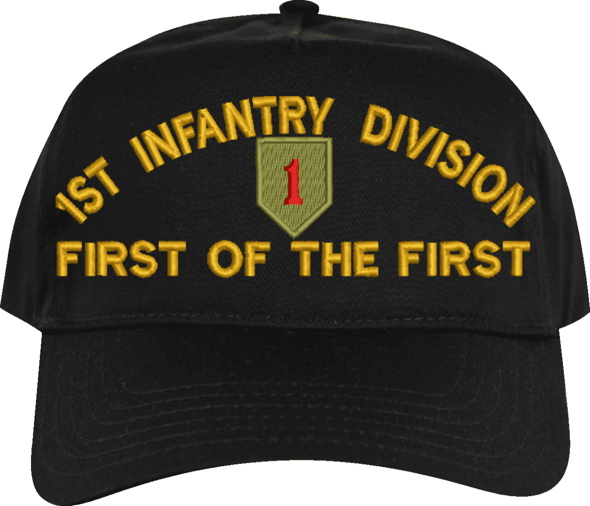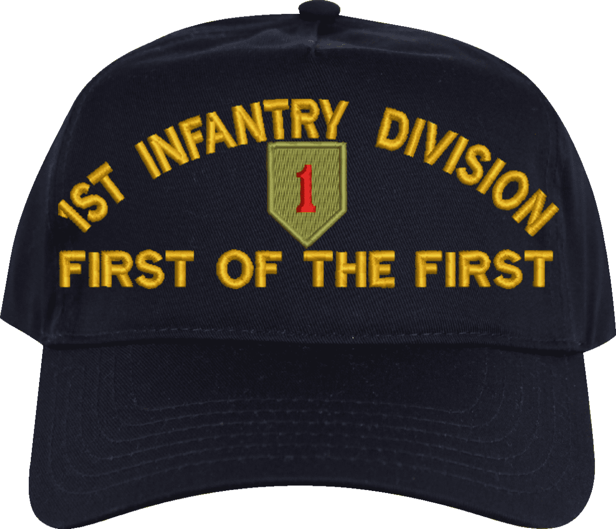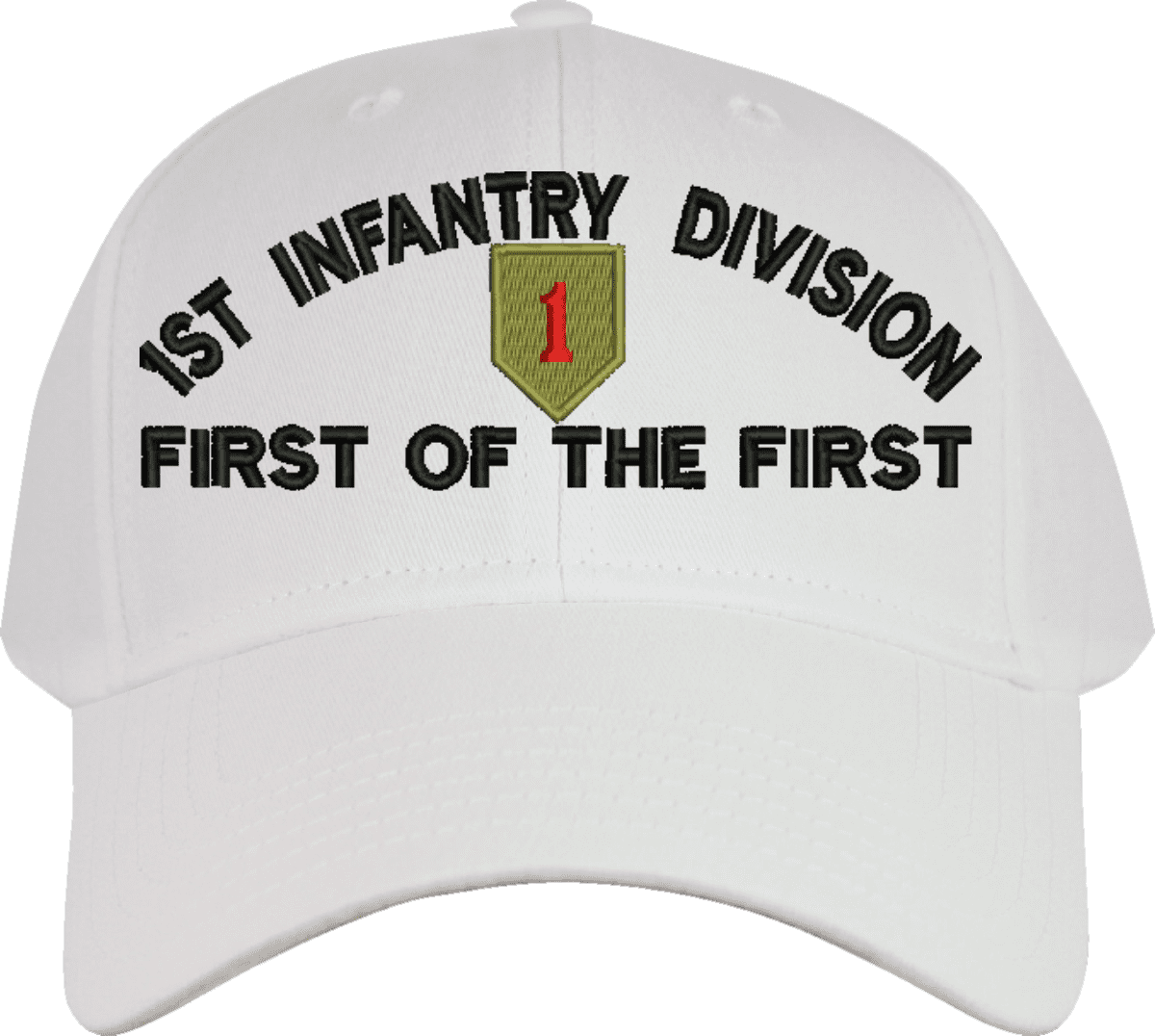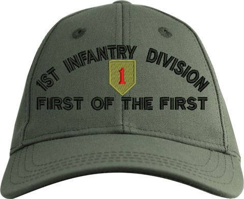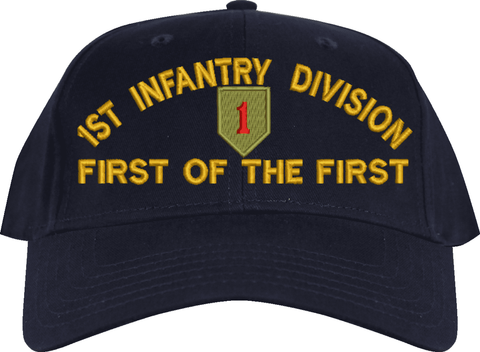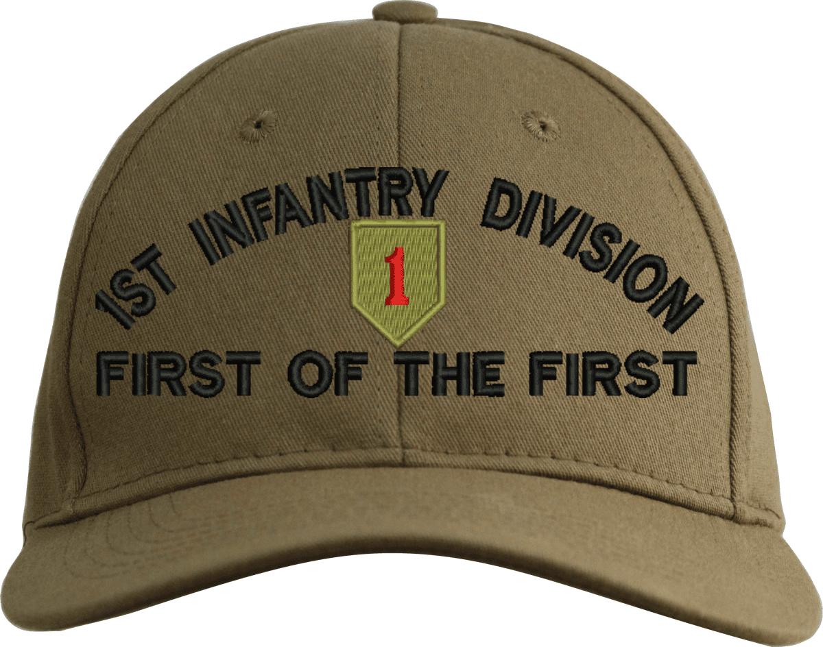 MilitaryBest is proud to offer this 1st Infantry Division 'First of the First' Embroidered Cap. The design of this Cap is crisp, clean, and sure to be loved by people of all ages! This Cap is crafted by our skilled embroidery technicians at our facilities in Scottsboro, AL. As with all MilitaryBest items, your satisfaction is guaranteed!Caps ordered with custom embroidered personalized back text require an additional 2 to 3 days production time. All custom back text will be embroidered in ALL CAPITAL LETTERS. Caps personalized with back text are non-returnable unless there is a material defect in the cap.