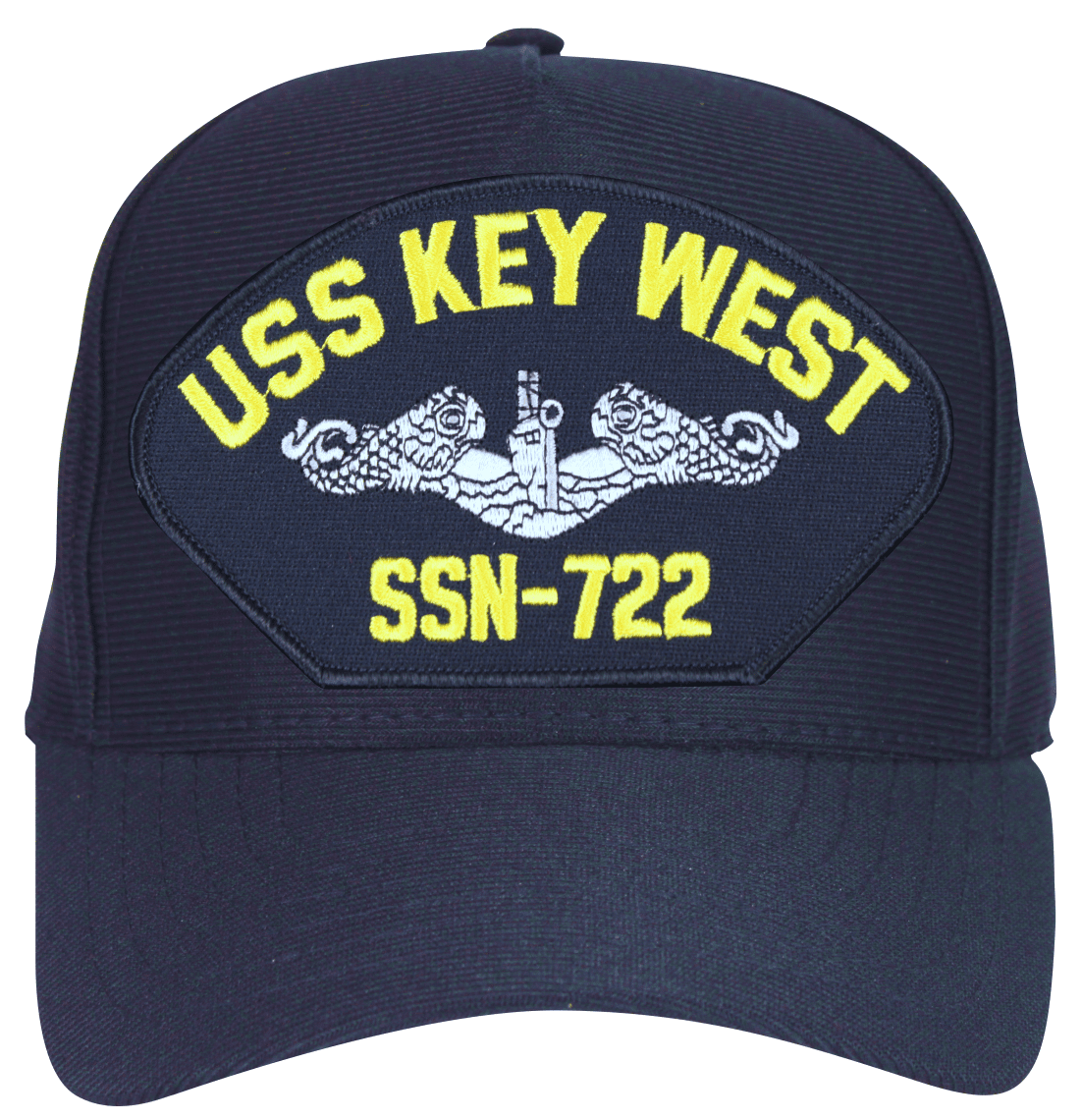 This USS Key West SSN-722 ( Silver Dolphins ) Submarine Enlisted Cap is an emblematic, poly, dark under the visor cap. Each has an adjustable strap, and is available as a 5 panel high profile or 6 panel low profile cap. All MilitaryBest caps are fully guaranteed. Some people call them Military Covers or Military Hats. This Military Cap is proudly Made in The U.S.A.For caps ordered with custom embroidered personalized text please allow an additional 3 to 5 days production time. All custom back text will be embroidered in ALL CAPITAL LETTERS. Caps with back text or eggs are non-returnable unless there is a material defect in the cap. If a style is not selected the cap will be made using a high profile style cap as pictured.