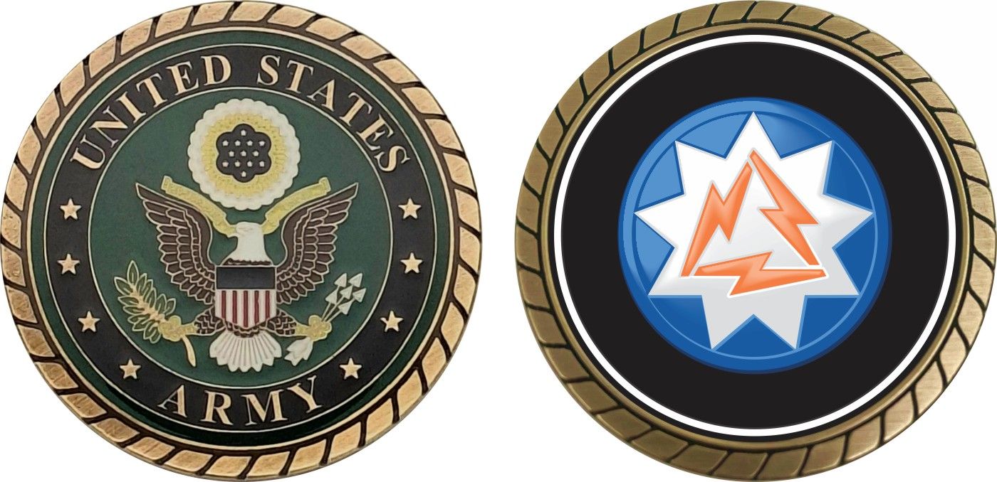This 1 3/4” 93rd Signal Brigade Patch Challenge Coin is proudly offered by Militarybest. This Officially Licensed Army coin has beautiful enamel finish on one side and an organized crisp clean design on the opposite side.