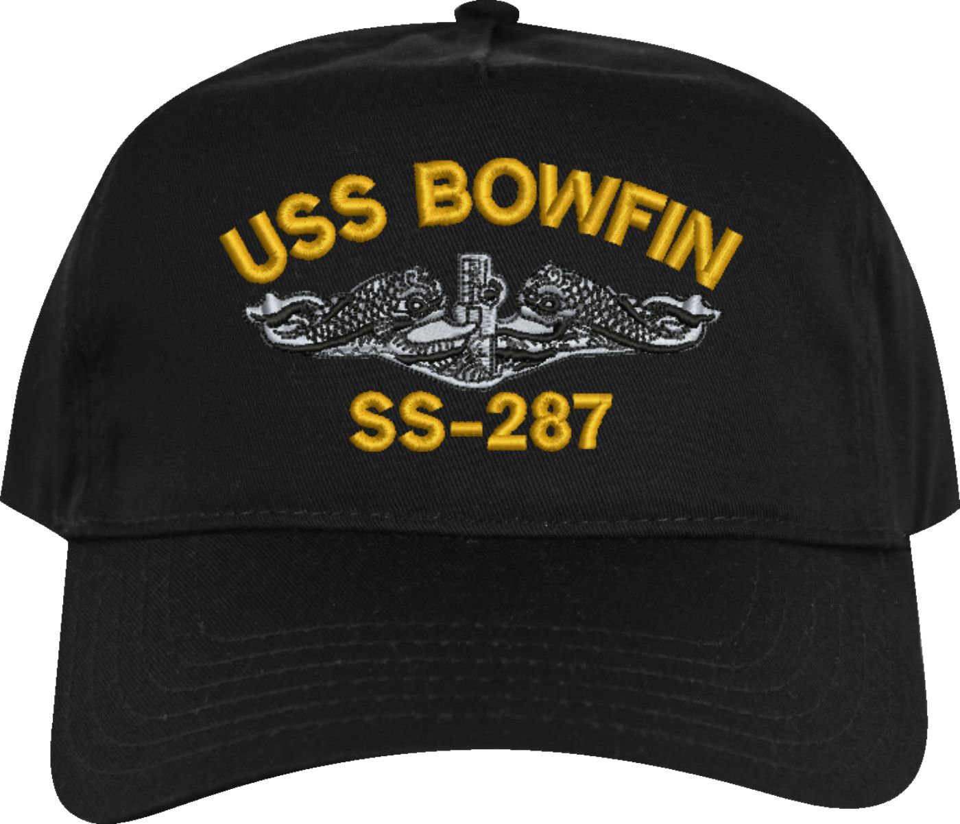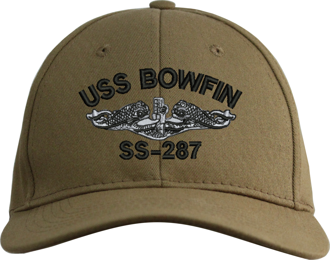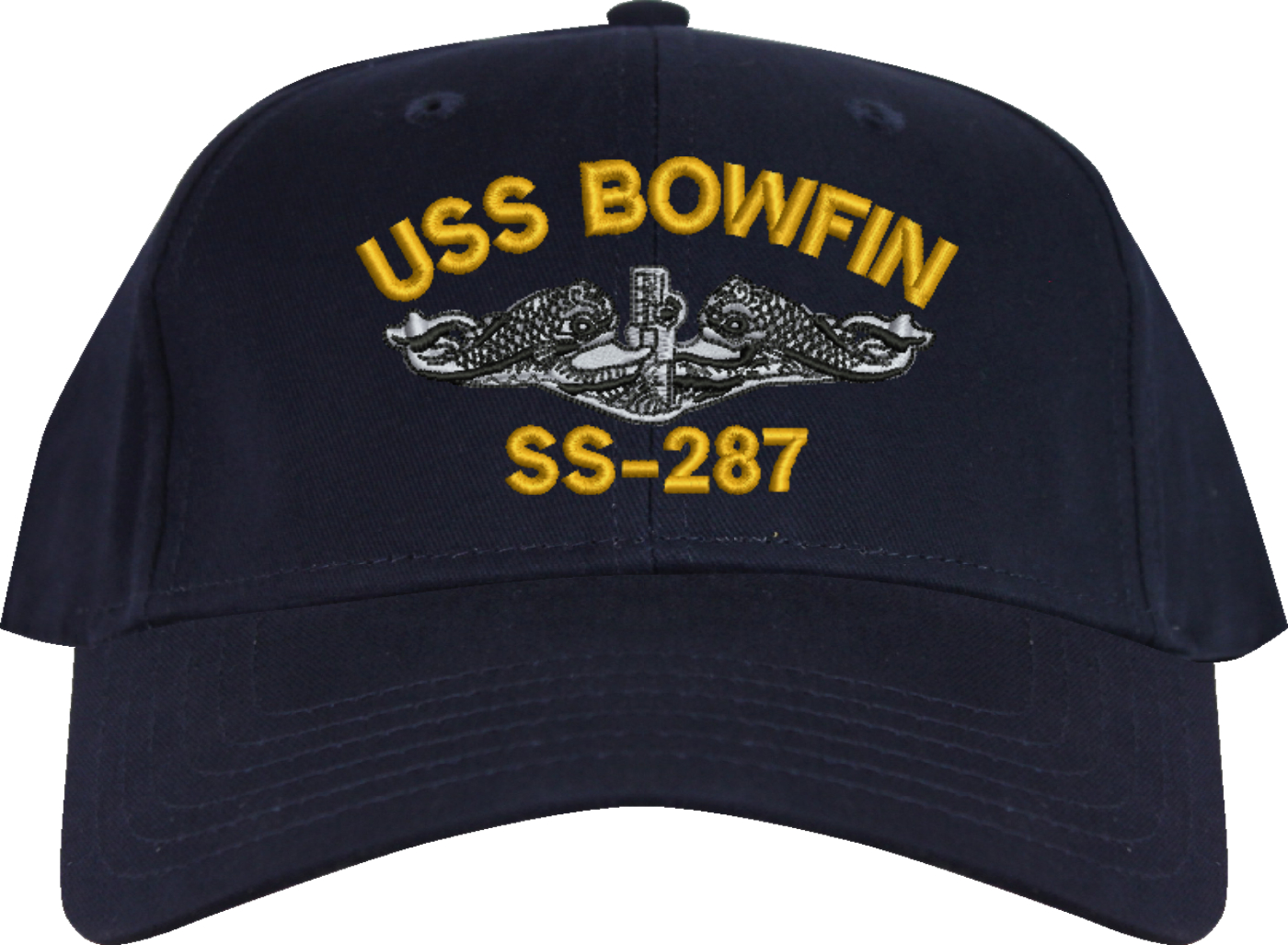 MilitaryBest is proud to offer this USS Bowfin SS-287 w/Dolphins Embroidered Cap. The design of this Cap is crisp, clean, and sure to be loved by people of all ages! This Cap is crafted by our skilled embroidery technicians at our facilities in Scottsboro, AL. As with all MilitaryBest items, your satisfaction is guaranteed!