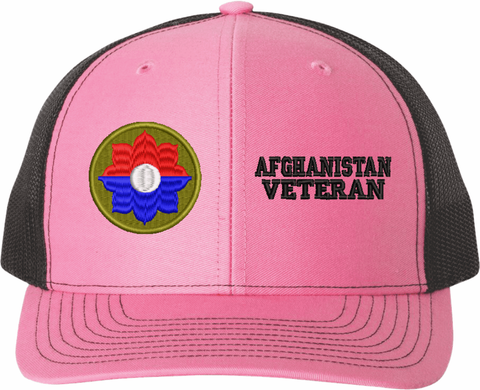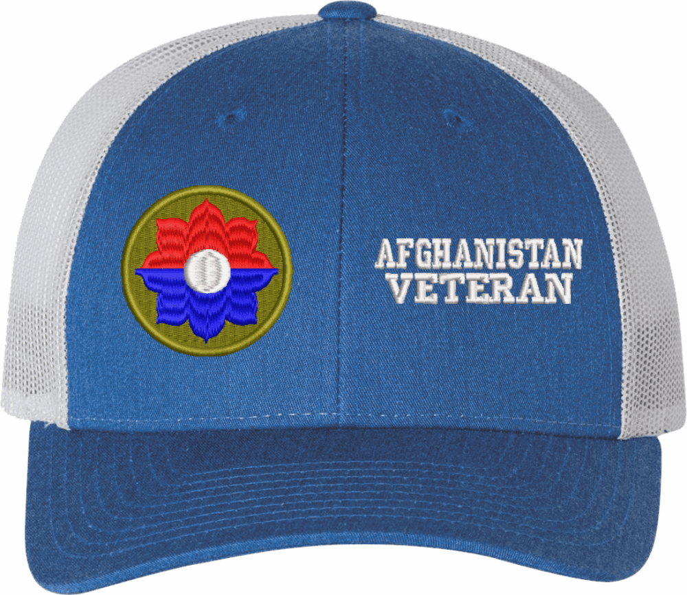 MilitaryBest is proud to offer this Mesh Back U.S. Army 9th Infantry Division Afghanistan Veteran Women's Split-Cap. The design is embroidered onto a 6x panel mid/low profile mesh back cap and is crisp, clean, and sure to be loved by all! As with all MilitaryBest caps and apparel your satisfaction is guaranteed!Caps ordered with embroidered back text requires an additional 1 to 2 days of production time. All personalized caps will be embroidered in ALL CAPITAL LETTERS. Caps personalized with back text are not returnable unless there is a material defect in the cap.