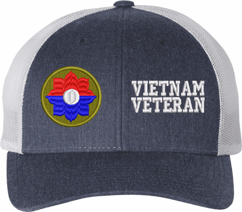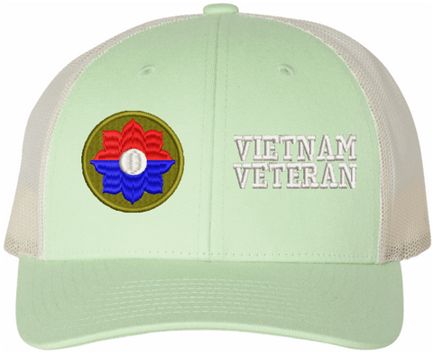 MilitaryBest is proud to offer this Mesh Back U.S. Army 9th Infantry Division Vietnam Veteran Women's Split-Cap. The design is embroidered onto a 6x panel mid/low profile mesh back cap and is crisp, clean, and sure to be loved by all! As with all MilitaryBest caps and apparel your satisfaction is guaranteed!Caps ordered with embroidered back text requires an additional 1 to 2 days of production time. All personalized caps will be embroidered in ALL CAPITAL LETTERS. Caps personalized with back text are not returnable unless there is a material defect in the cap.