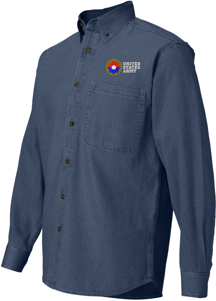 Note: Some of the Color Options pictured may not be available. Available Color Options are listed on the drop down menu above.MilitaryBest is proud to offer this quality 9th Infantry Division United States Army Denim Shirt. This long sleeve button down denim shirt is made using a 100% cotton denim material. These quality Military Denim Shirts are proudly embroidered at our facilities in Scottsboro, AL. Support the Army MWR program by purchasing only from Licensed Vendors.