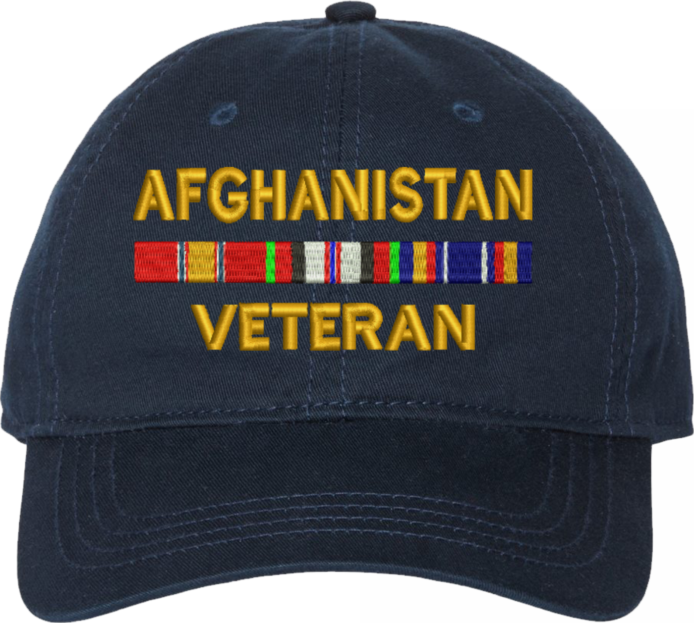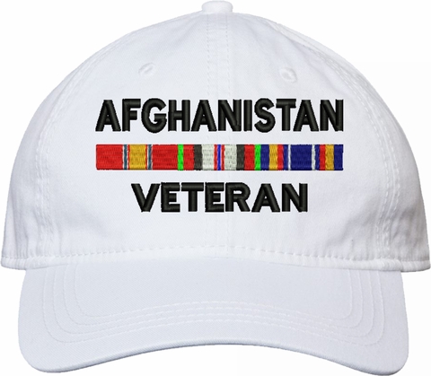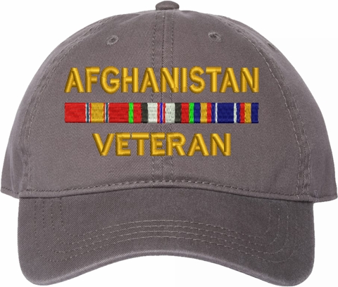 Show your military pride with this Afghanistan Veteran with Service Ribbons Unstructured Dad Cap from MilitaryBest. Crafted from 100% washed chino twill cotton, this six-panel, low-profile cap offers a relaxed and comfortable fit. Featuring high-quality embroidery done in our Scottsboro, Alabama facility, this cap is designed with a pre-curved visor and an adjustable tri-glide buckle closure for a perfect fit. Whether for everyday wear or as a meaningful gift, this cap is a great way to honor your own or a loved one's service.For caps ordered with custom embroidered personalized text please allow an additional 3 to 5 days production time. All custom back text will be embroidered in ALL CAPITAL LETTERS. Caps with back text or eggs are non-returnable unless there is a material defect in the cap.