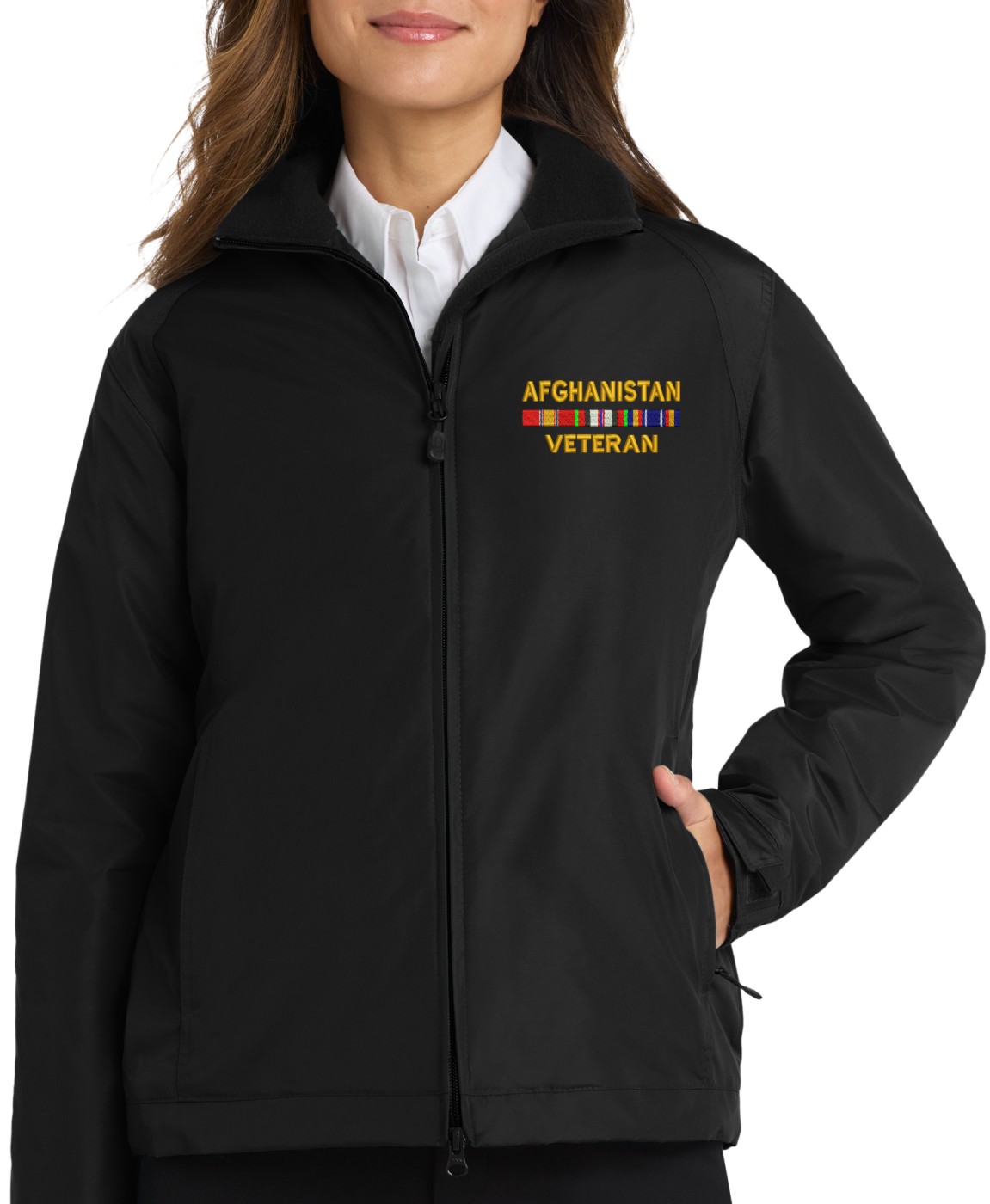MilitaryBest is proud to offer this Afghanistan Veteran with Service Ribbons Women's 3-Season Jacket. This jacket is embroidered by our MilitaryBest team in Northeast Alabama. These jackets are water- and wind-resistant.Product Features