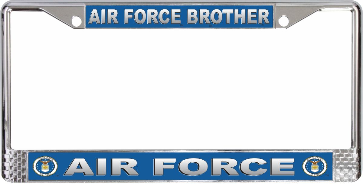 This 'Air Force Brother' License Plate Frame is made from the highest quality finished metal alloy. Each one is designed to provide years of use. Each is designed in our facility in Scottsboro, Alabama. Please check your state and local regulations for compatibility of these frames for use on your vehicle.
