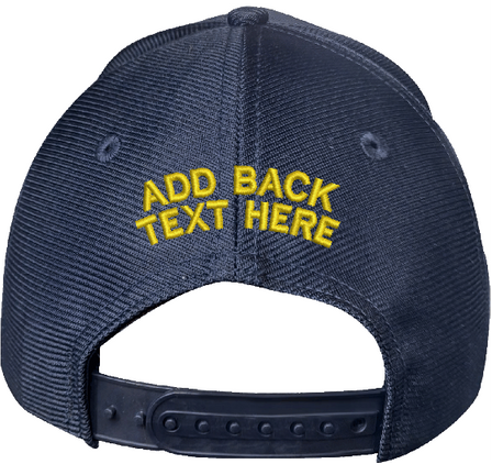 We will be glad to include scrambled eggs, which is an embroidered gold oak leaf added to the brim of the cap. For caps ordered with custom embroidered personalized text please allow an additional 3 to 5 days production time. All custom back text will be embroidered in ALL CAPS. Caps with back text or eggs are non-returnable unless there is a material defect in the cap. If a style is not selected the cap will be made using a high profile style cap as pictured.