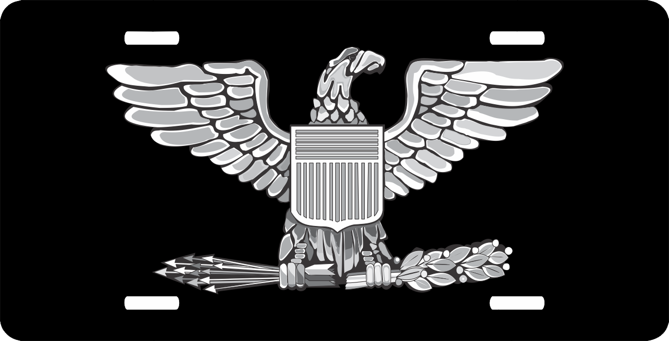 This Air Force Colonel Officer Rank Insignia License Plate is made from heavy gauge aluminum and has a baked enamel finish to last for many years of use. Each plate measures 5 15/16" x 11 15/16". This license plate would make a wonderful addition to your collection or a great gift.