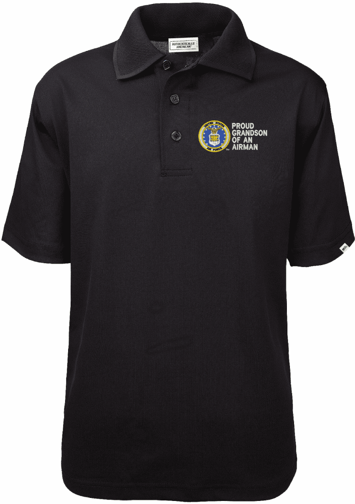 MilitaryBest proudly offers a top-quality Proud Grandson of an Airman U.S. Air Force Moisture Wicking Polo; made in the USA by Authentically American whom we have proudly partnered with.- Proudly Made and Embroidered in the USA.