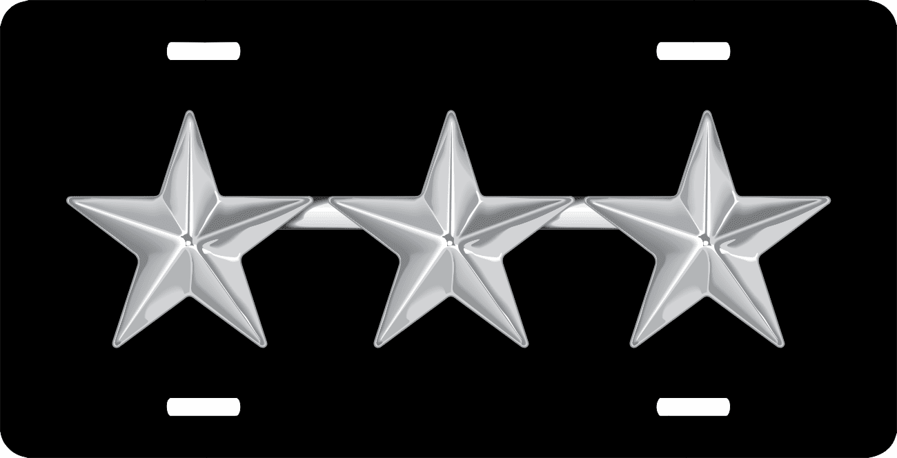 This Air Force Lieutenant General Officer Rank Insignia License Plate is made from heavy gauge aluminum and has a baked enamel finish to last for many years of use. Each plate measures 5 15/16" x 11 15/16". This license plate would make a wonderful addition to your collection or a great gift.