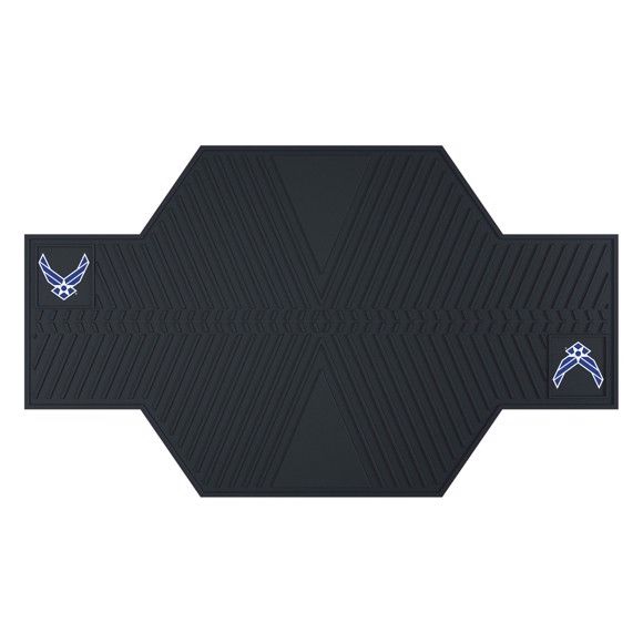 This U.S. Air Force Motorcycle Mat provides protection to your garage floor from dirt, debris, and oil. It features a grip style backing to keep it in place while holding liquids. It measures 82.5” L x 42” W and 5/16" thick. This mat would make a wonderful addition to your collection or a great gift. It’s quality is guaranteed.Fan Mats products are made to order and returns are not accepted unless there is a material defect in the product. These items are made to order and are in production 7-10 days.