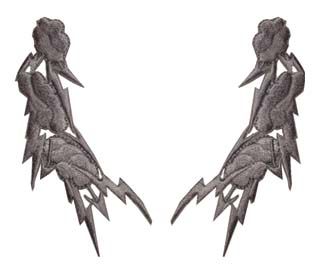 These heat seal Air Force Double Bolts and Lightning measure 4" x 1 1/8" and are the same bolts and lightning that we apply to our caps. They can be applied to most any bill of any cap. We STRONGLY suggest that you have a professional iron them on because the heat settings need to be higher than can be achieved by a household iron.