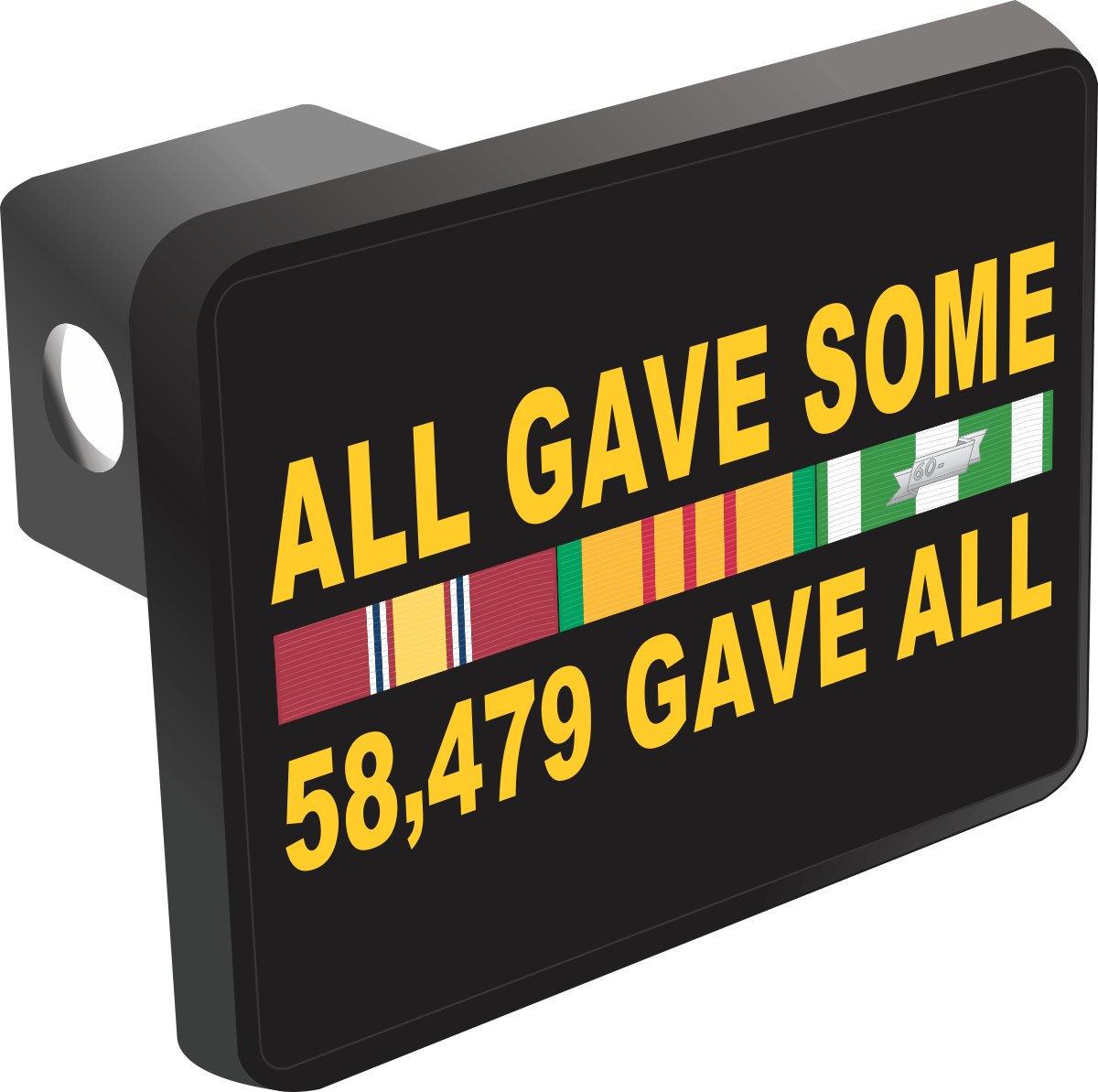 This All Gave Some 58479 Gave All Vietnam 3 Ribbon Stack Hitch Cover is proudly Made in the USA. Each Hitch Cover's face plate measures 4.7" x 3.4" and is applied on a black heavy duty injection molded plastic 2" hitch cover; link pin not included. The face plate of the hitch cover is sublimation printed to provide a beautiful glossy finish sure to catch the eye. This hitch cover would make a wonderful addition to your truck or other vehicle.A percentage of the sale of each MilitaryBest item is forwarded to the licensing departments of each respective branch of service in support of the MWR (Morale, Welfare, & Recreation) program. These payments are made by either ALL4U LLC or the wholesaler from where the item originated. Our team thanks you for your service and your support of these programs.