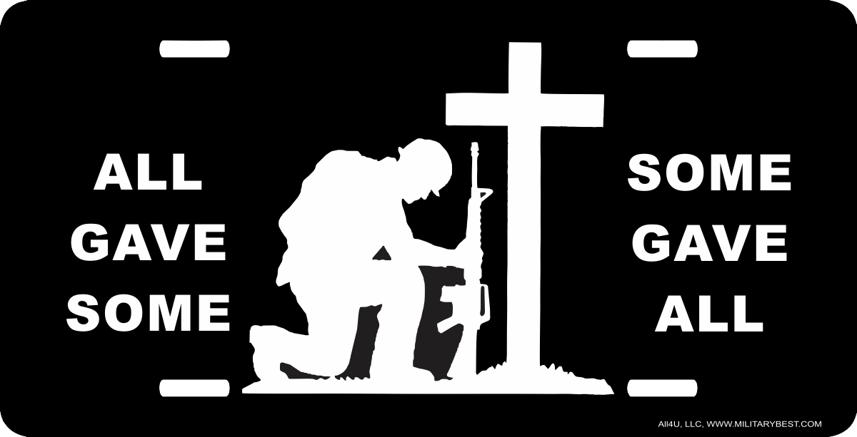 This All Gave Some Fallen Soldier Memorial License Plate is made from heavy gauge aluminum and has a baked enamel finish to last for many years of use. Each plate measures 5 15/16" x 11 15/16". This license plate would make a wonderful addition to your collection or a great gift.
