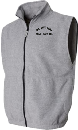 MilitaryBest is proud to offer this All Gave Some, Some Gave All Text-Only Fleece Vest. We thank you for your business and for all who paid the ultimate sacrifice for our country.