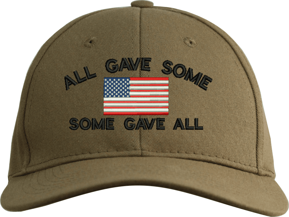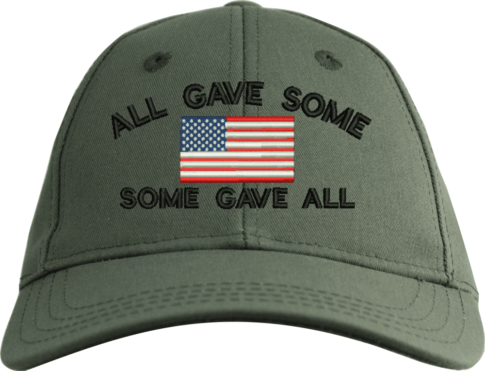 MilitaryBest is proud to offer this Some Gave All with American Flag Cotton-Twill. We thank you for your business and for all who paid the ultimate sacrifice for our country.A percentage of the sale of each MilitaryBest item is forwarded to the licensing departments of each respective branch of service in support of the MWR (Morale, Welfare, & Recreation) program. These payments are made by either ALL4U LLC or the wholesaler from where the item originated. Our team thanks you for your service and your support of these programs.
