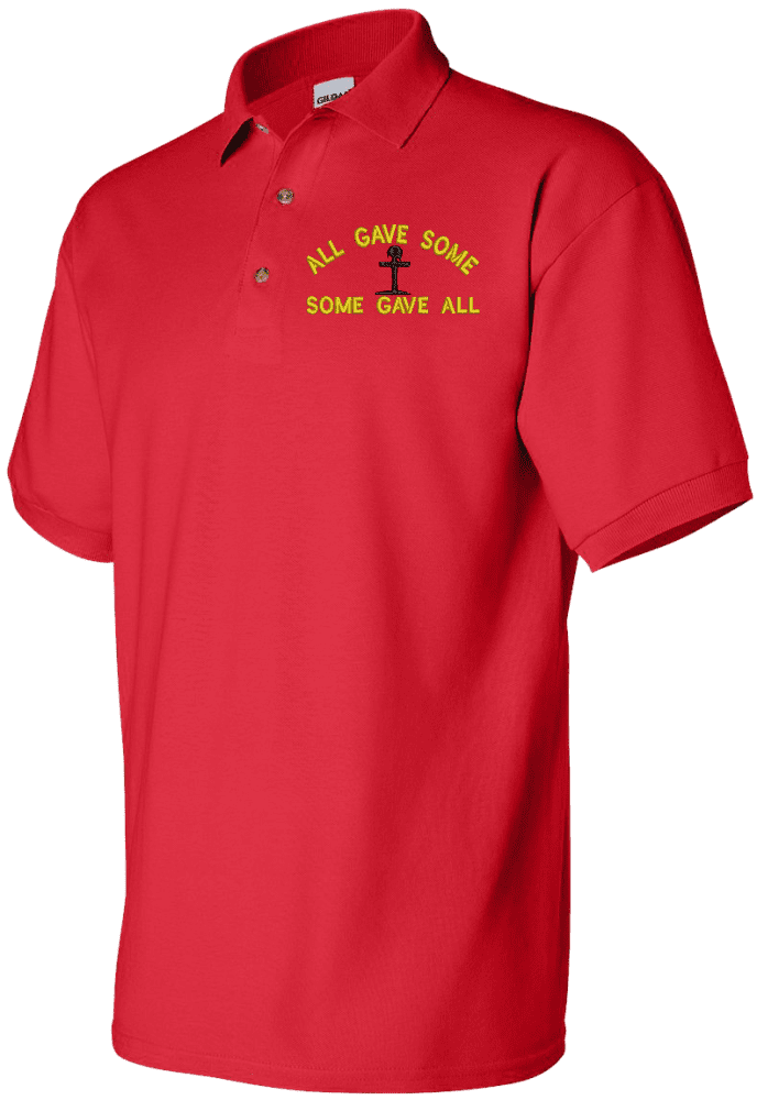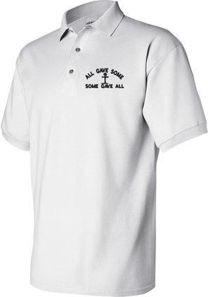 Note: Some of the Color Options pictured may not be available. Available Color Options are listed on the drop down menu above.MilitaryBest is proud to offer this quality All Gave Some, Some Gave All with Gravesite Polo. Each Polo is available in either 100% Ringspun cotton pique or a 50/50 cotton/polyester blend. These quality Military Polos are proudly embroidered at our facilities in Scottsboro, AL. Support the Army MWR program by purchasing only from Licensed Vendors.