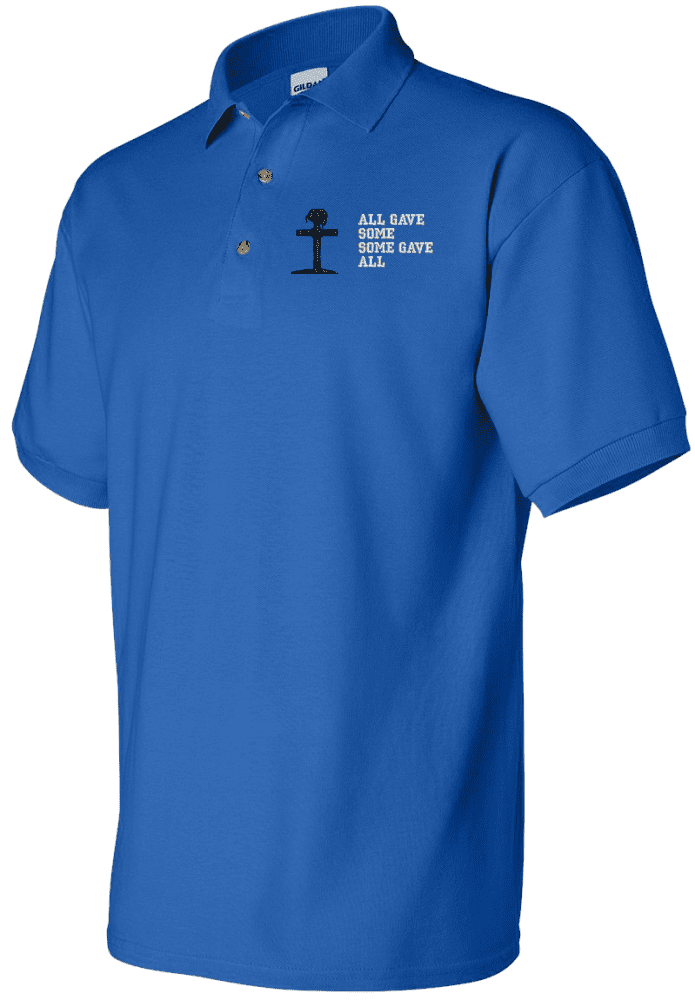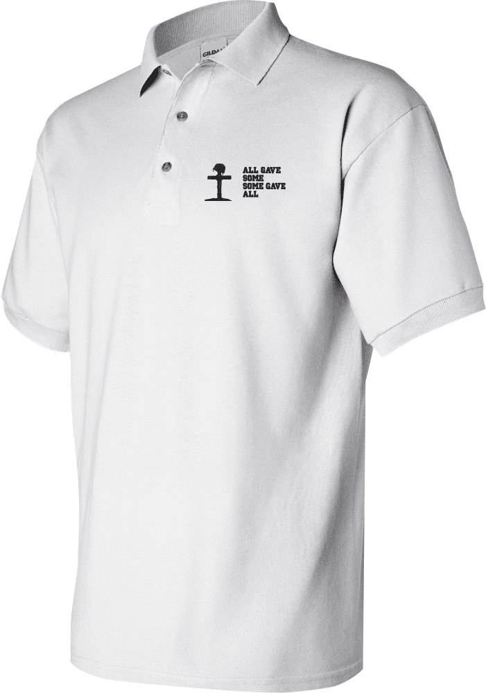 MilitaryBest is proud to offer this quality All Gave Some, Some Gave All with Gravesite Polo. Each Polo is available in either 100% Ringspun cotton pique or a 50/50 cotton/polyester blend. These quality Military Polos are proudly embroidered at our facilities in Scottsboro, AL. Support the Army MWR program by purchasing only from Licensed Vendors.