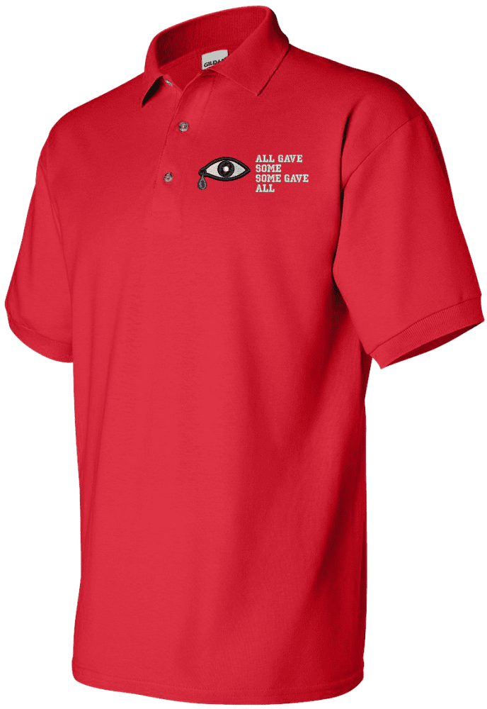 Note: Some of the Color Options pictured may not be available. Available Color Options are listed on the drop down menu above.MilitaryBest is proud to offer this quality All Gave Some, Some Gave All with Teardrop Polo. Each Polo is available in either 100% Ringspun cotton pique or a 50/50 cotton/polyester blend. These quality Military Polos are proudly embroidered at our facilities in Scottsboro, AL. Support the Army MWR program by purchasing only from Licensed Vendors.