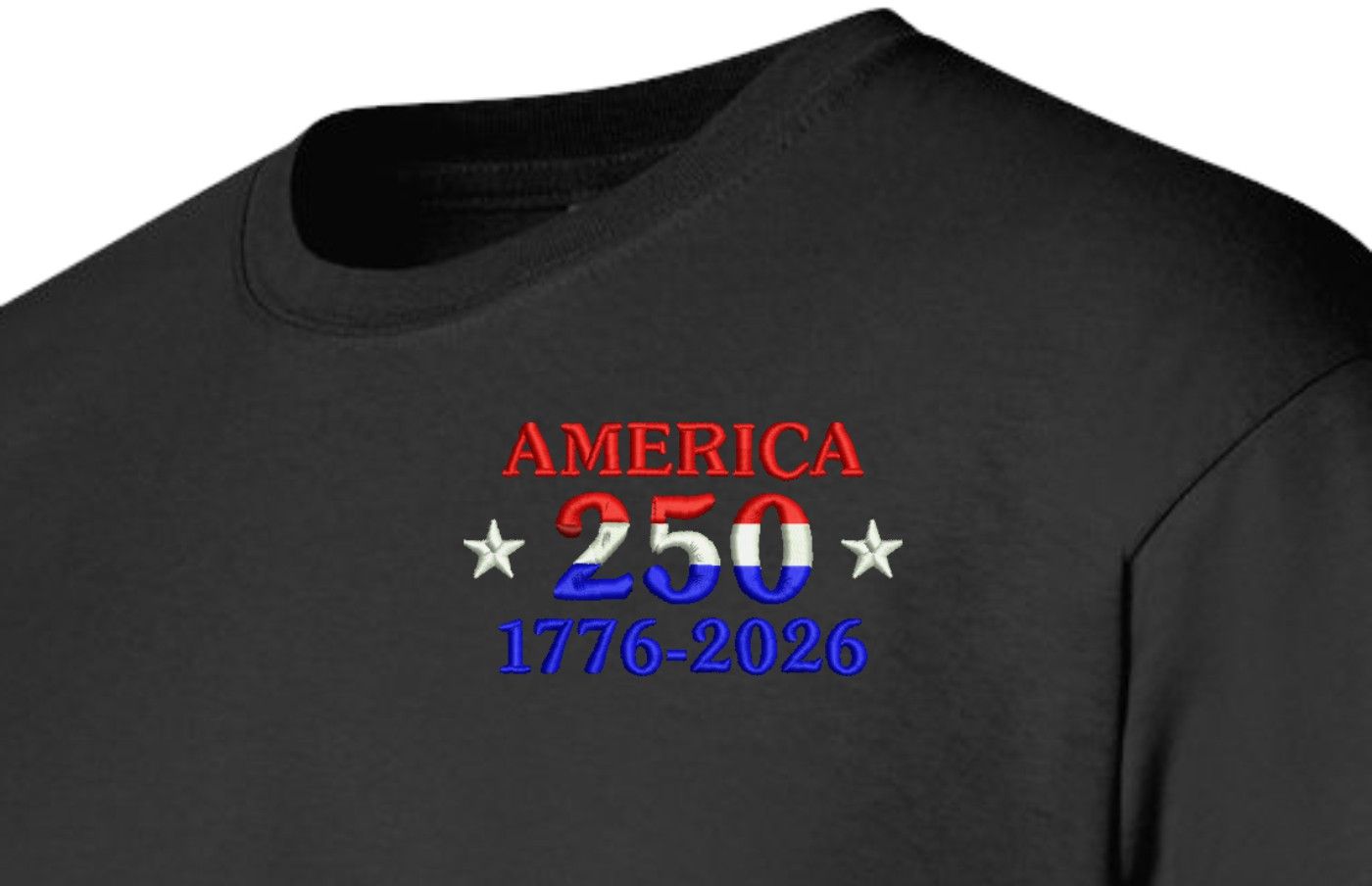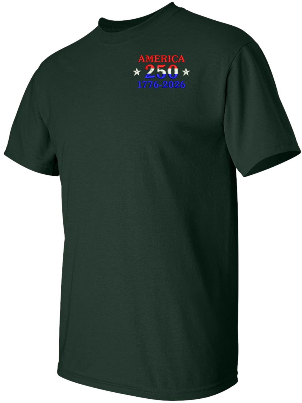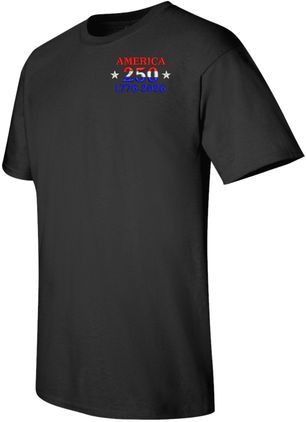 Note: Some of the Color Options pictured may not be available. Available Color Options are listed on the drop down menu above.MilitaryBest is expanding its line of apparel with this fine America 250 Embroidered T-Shirt. This short sleeve t-shirt is made using 100% cotton material. This shirt will make an excellent addition to your wardrobe or a fine gift. This Product is custom embroidered at our facilities in Scottsboro, AL when you place your order.