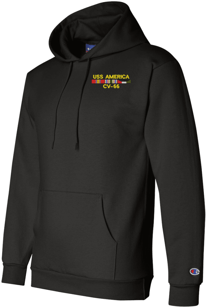 MilitaryBest has expanded its line of apparel with this custom embroidered USS America CV-66 with Desert Storm Ribbons (Kuwait) Pullover Hoodie. This Hoodie will make an excellent addition to your wardrobe, or a great gift. Your satisfaction is Guaranteed! This Hoodie is custom embroidered at our facilities in Scottsboro, AL.