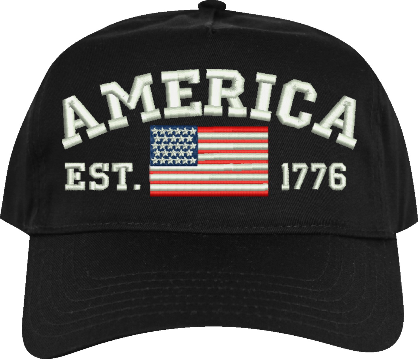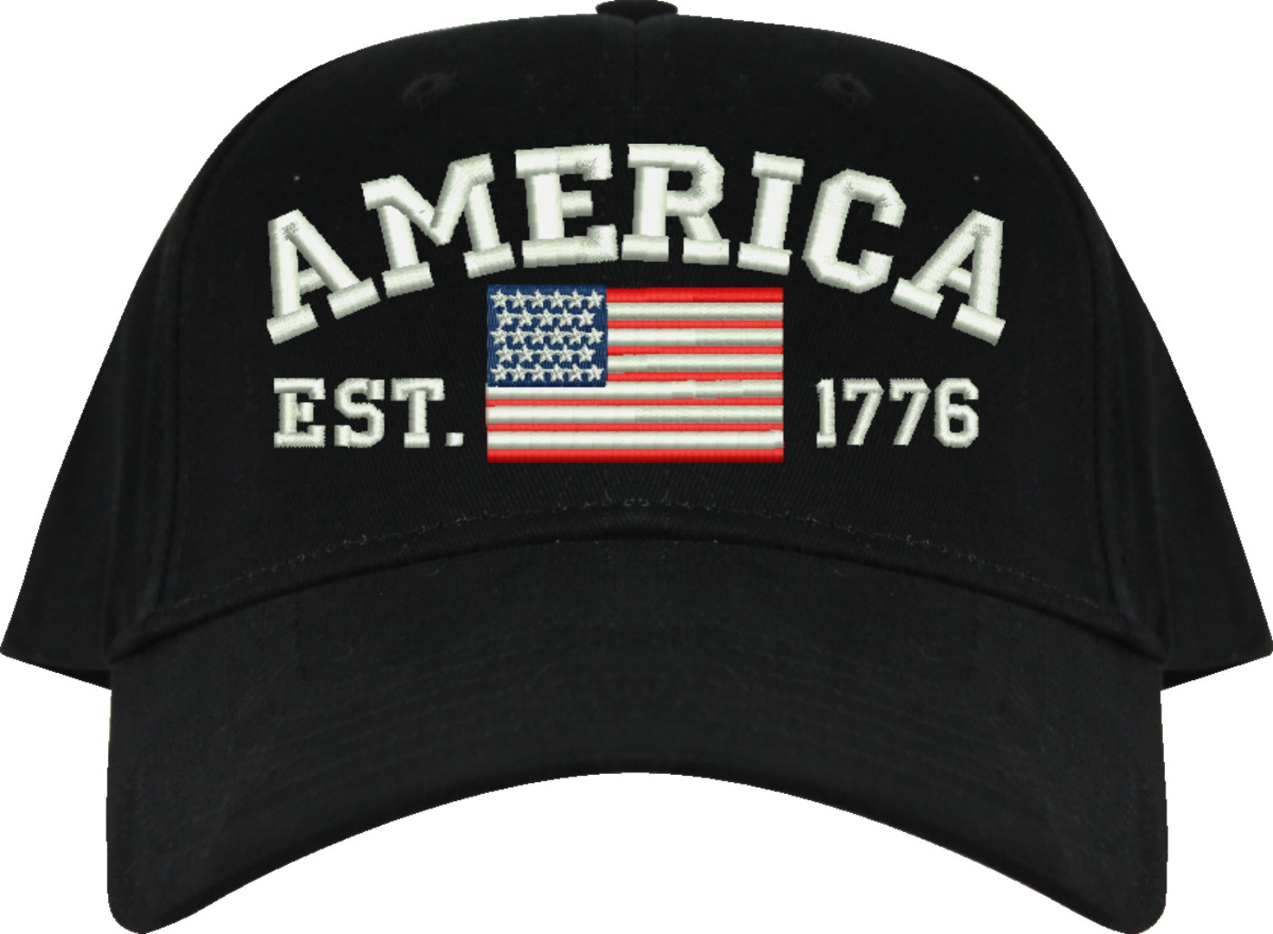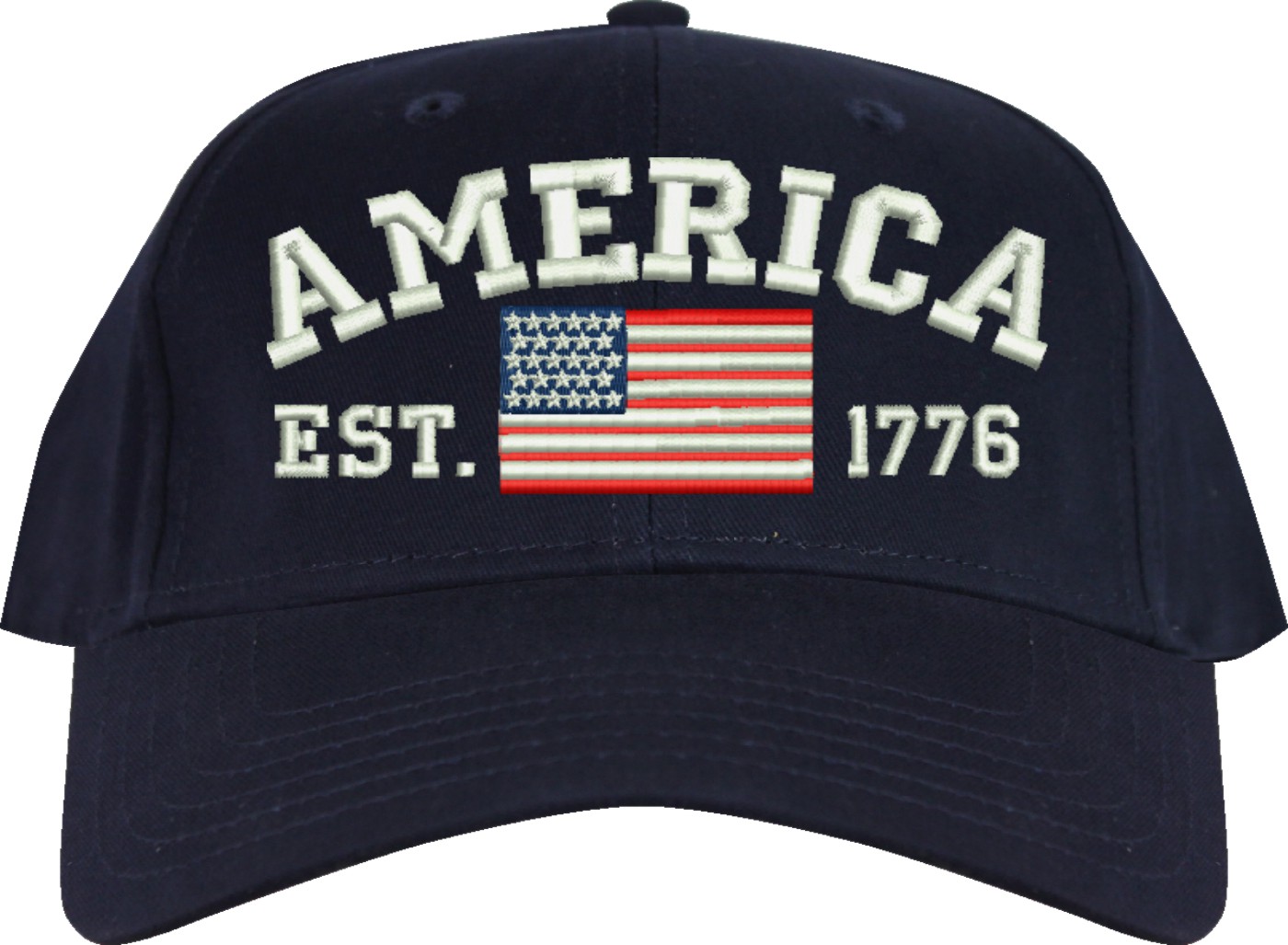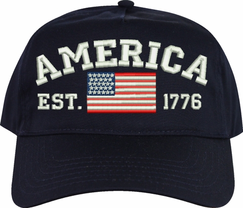 Celebrate 250 years of the United States of America! MilitaryBest is proud to offer this quality America Est 1776 Embroidered Cap. This cap is available in either 5 panel high profile or 6 panel low profile styling. This cap will make a great addition to your collection or a great gift. This cap is crafted by our skilled embroidery technicians at our facilities in Scottsboro, AL. Your satisfaction is guaranteed!For caps ordered with custom embroidered personalized text please allow an additional 3 to 5 days production time. All custom text will be embroidered in ALL CAPS. Caps with custom text or eggs are non-returnable unless there is a material defect in the cap.