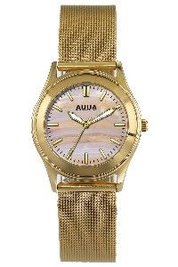 This beautiful 30mm watch features a stainless steel case and a gold stainless steel mesh metal band. This watch is water-resistant to 30M and carries a two-year warranty.