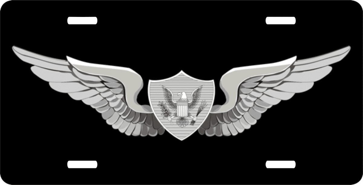 This Army Air Crew Wings License Plate is made from heavy gauge aluminum and has a baked enamel finish to last for many years of use. Each plate measures 5 15/16" x 11 15/16". This license plate would make a wonderful addition to your collection or a great gift.