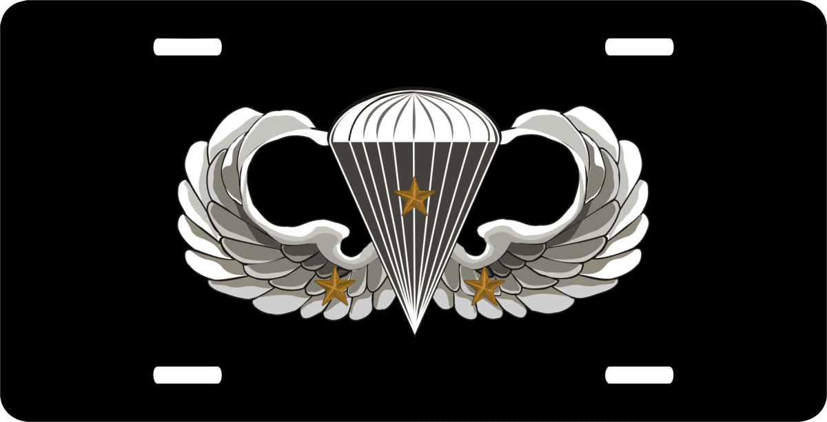 This Army Basic Combat 3 Jump Wings License Plate is made from heavy gauge aluminum and has a baked enamel finish to last for many years of use. Each plate measures 5 15/16" x 11 15/16". This license plate would make a wonderful addition to your collection or a great gift.