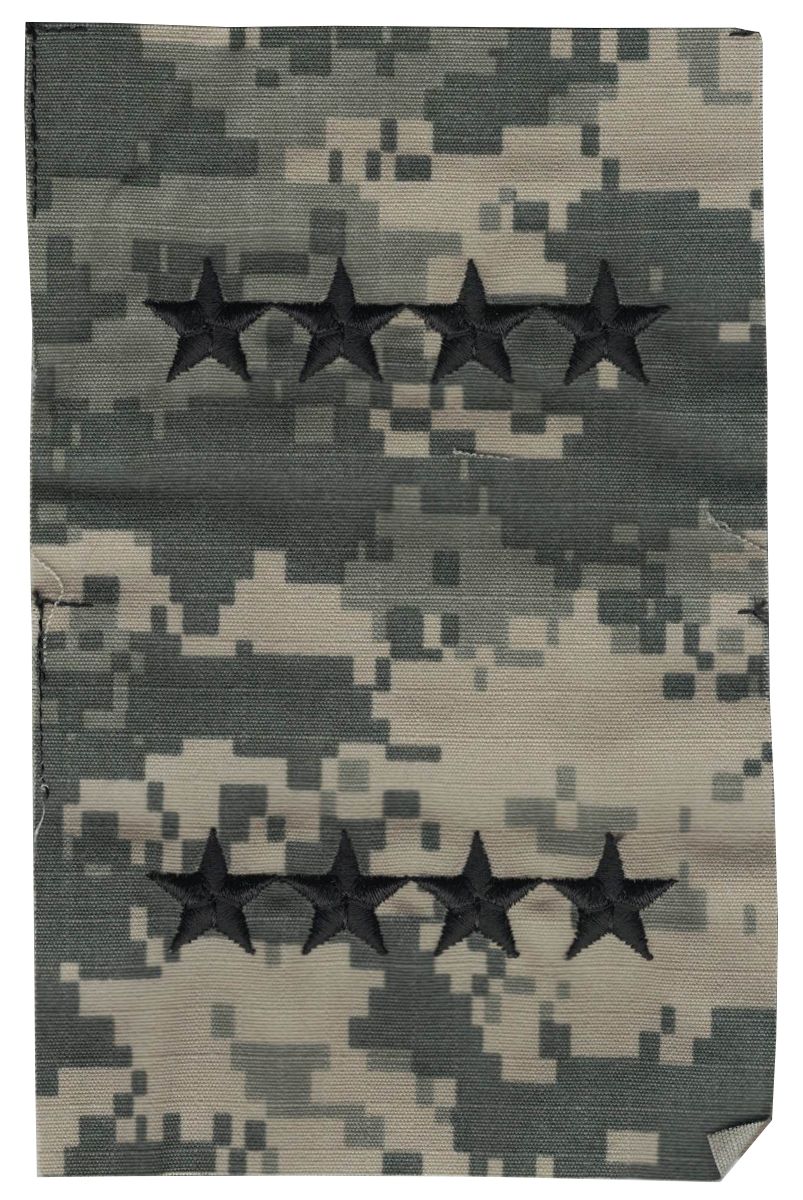 Each pair of Army General (O-10) 2" x 2" Helmet Cover Patches are made to Mil-Spec standards. They are made in the USA. FREE SHIPPING to all APO / FPO addresses.