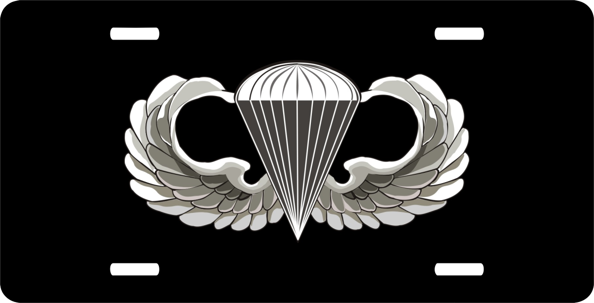 This Army Jump Wings License Plate is made from heavy gauge aluminum and has a baked enamel finish to last for many years of use. Each plate measures 5 15/16" x 11 15/16". This license plate would make a wonderful addition to your collection or a great gift.