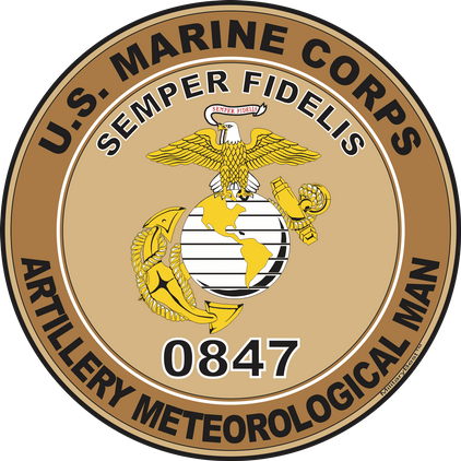 MilitaryBest is proud to offer this U.S.M.C. MOS 0847 Artillery Meteorological Man Decal. This U.S. Marine Corps MOS Decal is a great way to show your Marine Pride. All MilitaryBest Marine Corps stickers are printed using high-quality vinyl and U.V. resistant ink. Each is then cured, laminated and die cut for a beautiful crisp, clean and professional look. This U.S.M.C. MOS 0847 Artillery Meteorological Man Decal, as well as, any other MilitaryBest.com decal is proudly Made in the USA at our facilities in Scottsboro, AL. Select desired quantity and size from the menu above.Features: