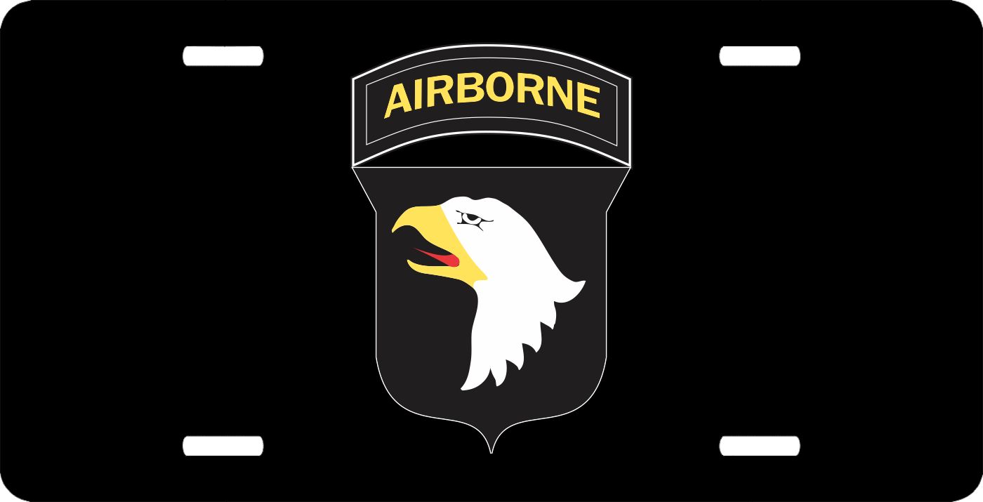 This Army 101st Airborne Division License Plate is made from heavy gauge aluminum and has a baked enamel finish to last for many years of use. Each plate measures 5 15/16" x 11 15/16". This license plate would make a wonderful addition to your collection or a great gift.