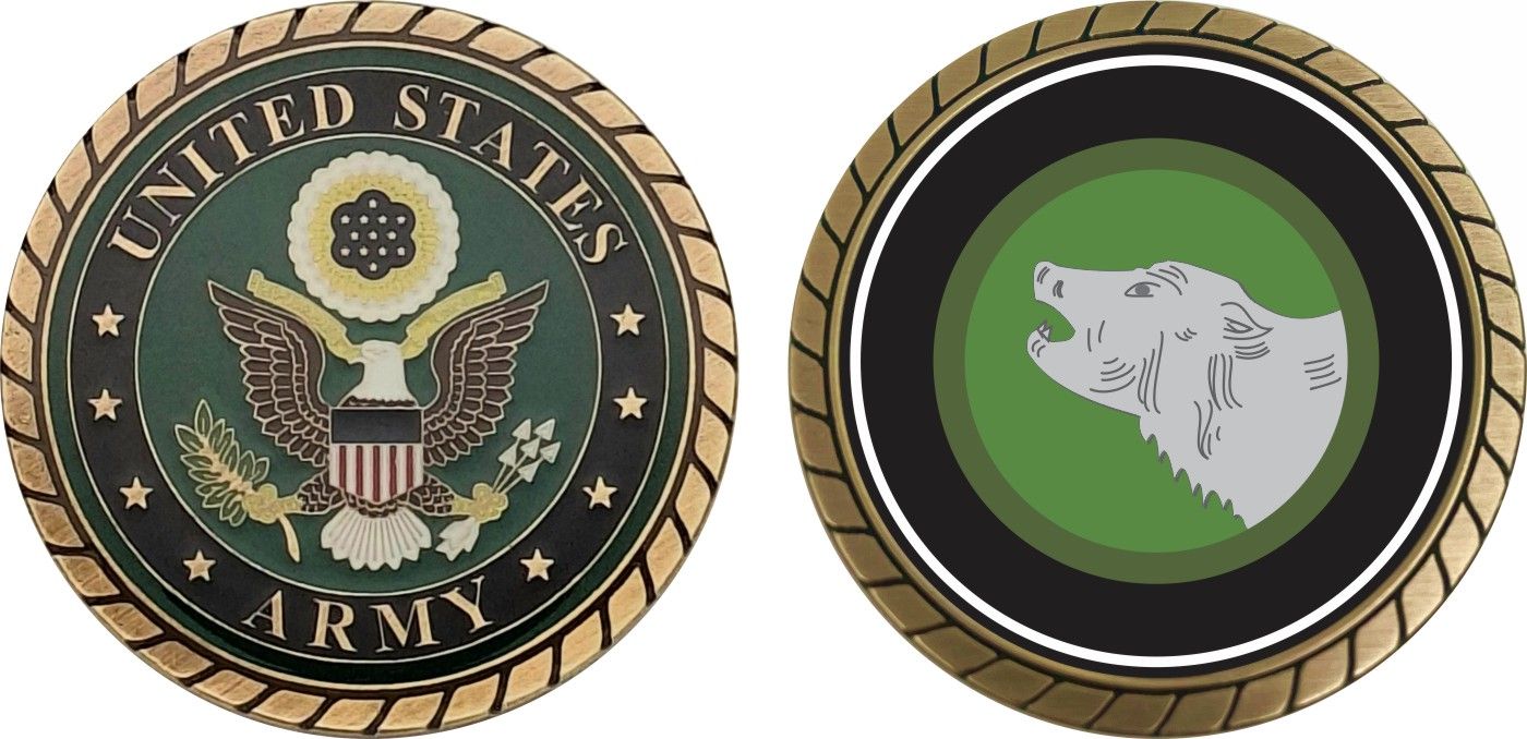 This 1 3/4” Army 104th Training Division Challenge Coin is proudly offered by Militarybest. This Officially Licensed Army coin has beautiful enamel finish on one side and an organized crisp clean design on the opposite side.